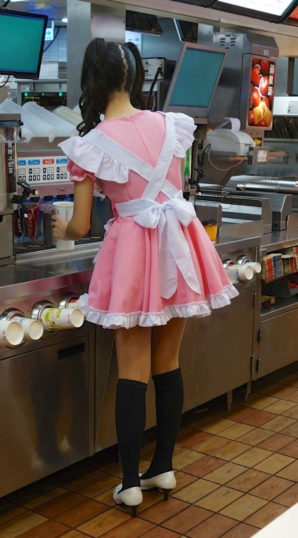 Оказывается в тайваньском Макдональдсе разрешается работать только няшкам в сексуальных и коротких платьях.