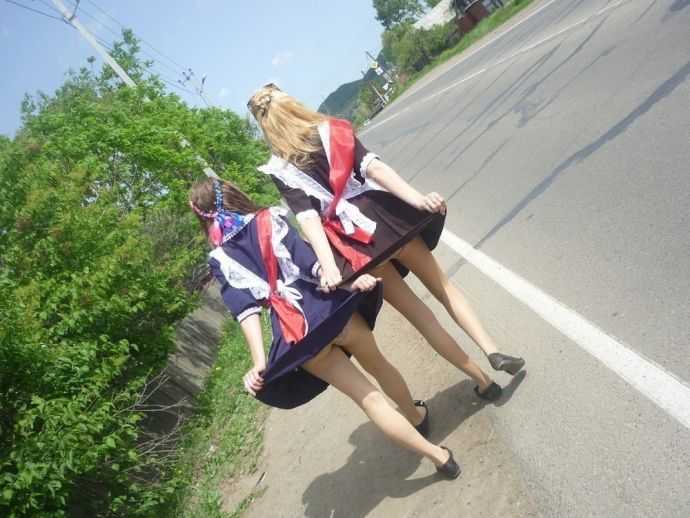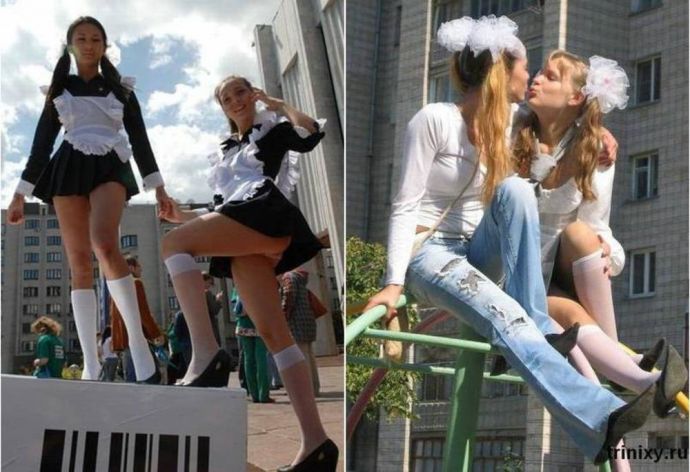 Знания это хорошо, но с сигаретами в зубах на первое сентября это не круто и юбки, которые еле еле прикрывают треугольник между ног не совсем правильно. Прикольная подборка с девушками на 1 сентября.