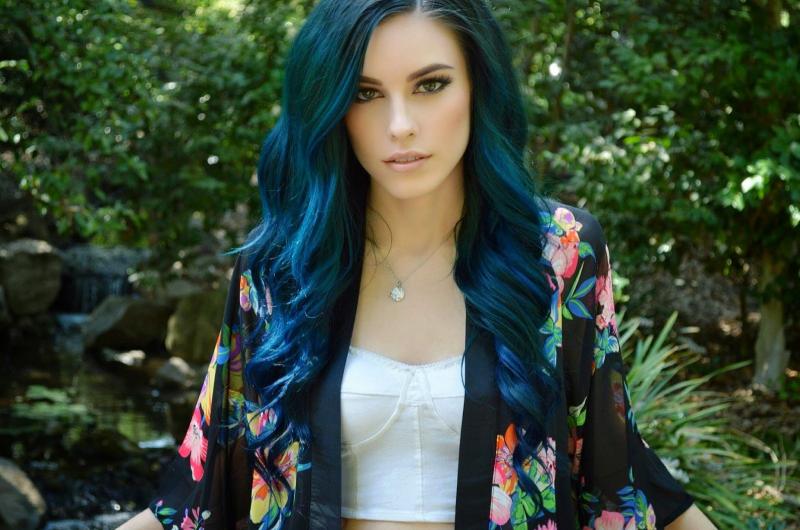Девушка красотка с тёмно голубыми волосами