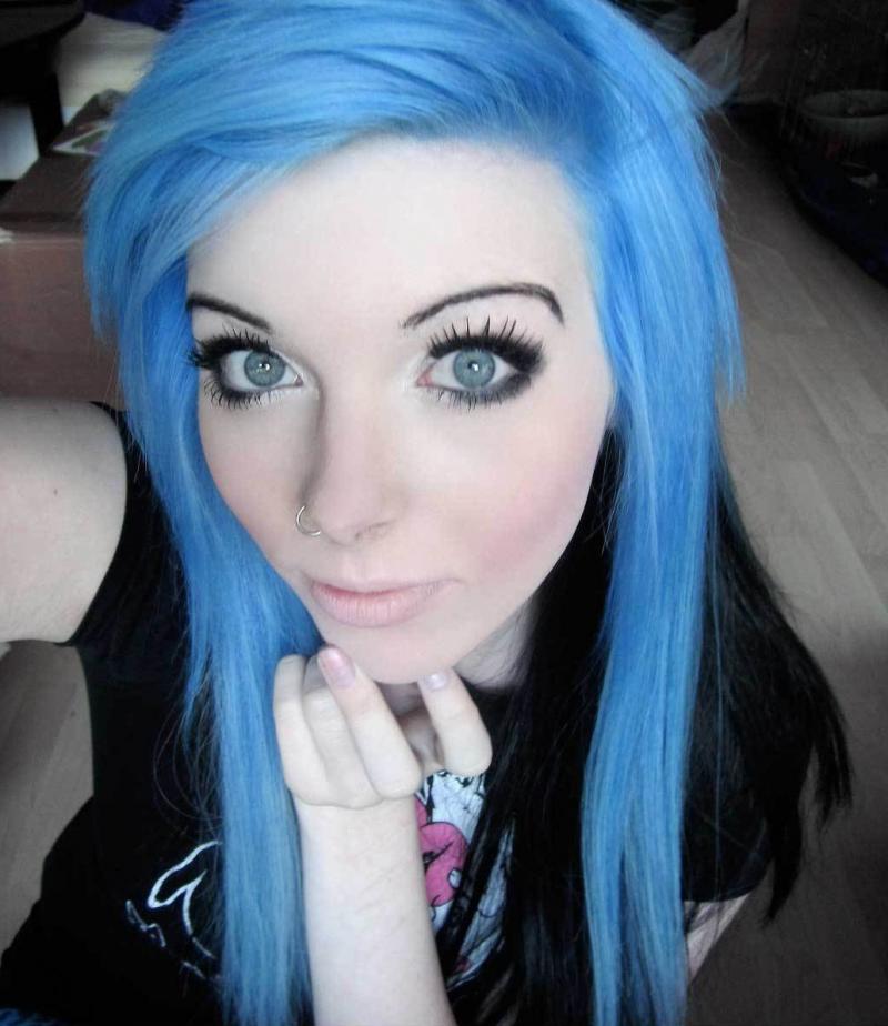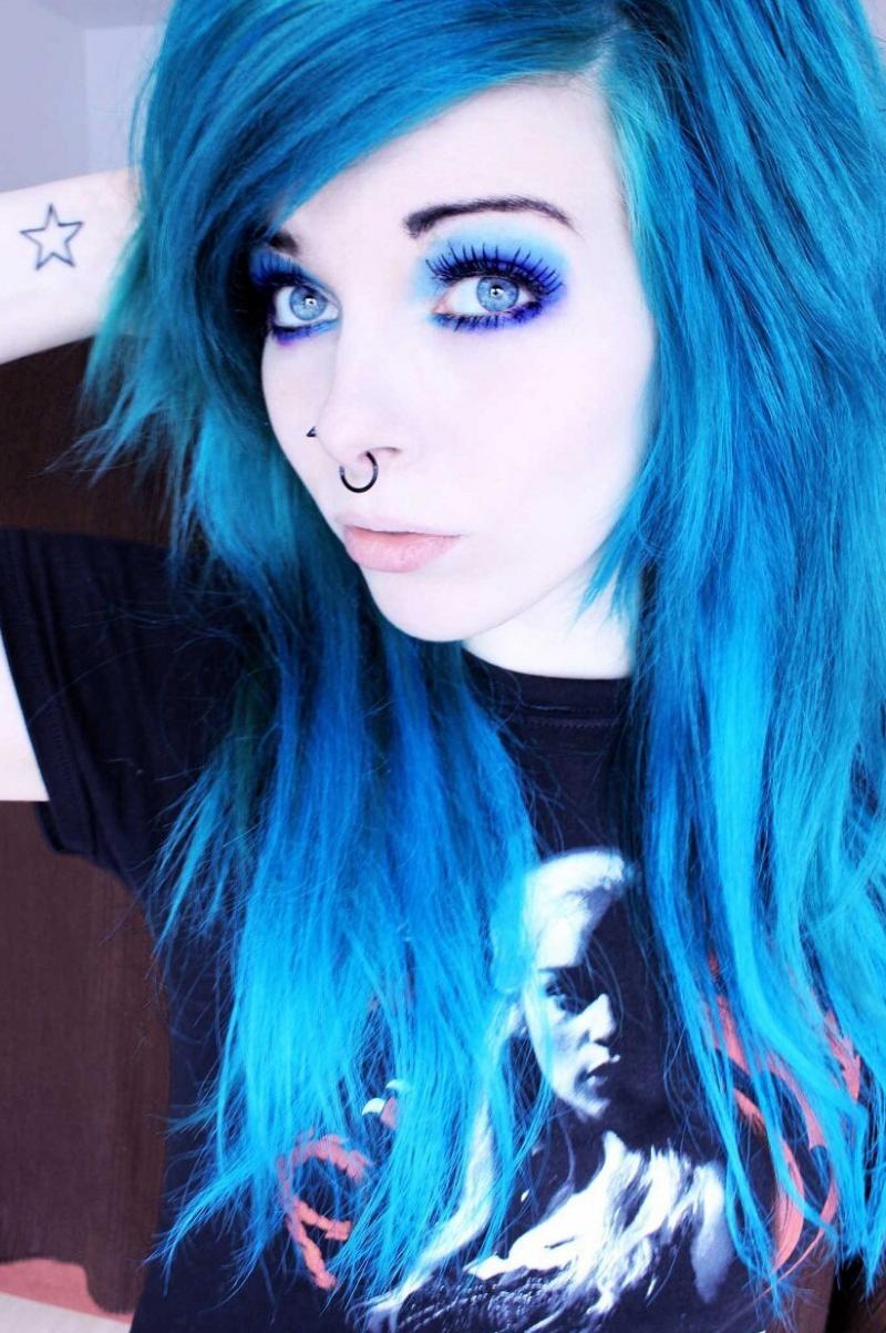 Девушка красотка эмо с голубыми волосами