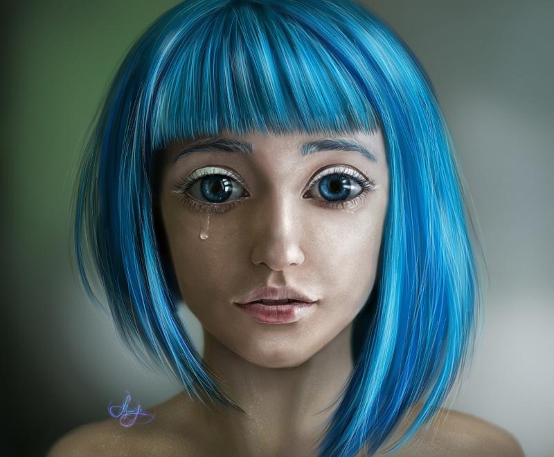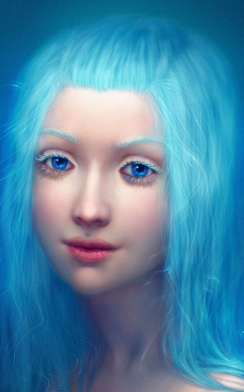 Рисунки девушки с голубыми волосами