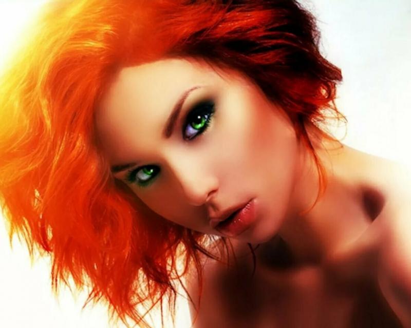 Девушка красотка с огненно рыжими волосами и зеленоватыми очами