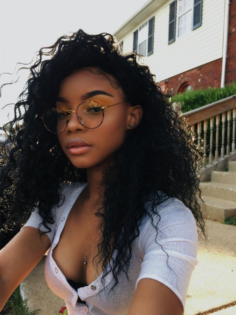 Кудрявые девушки чернокожие недлинные волосы темными очками