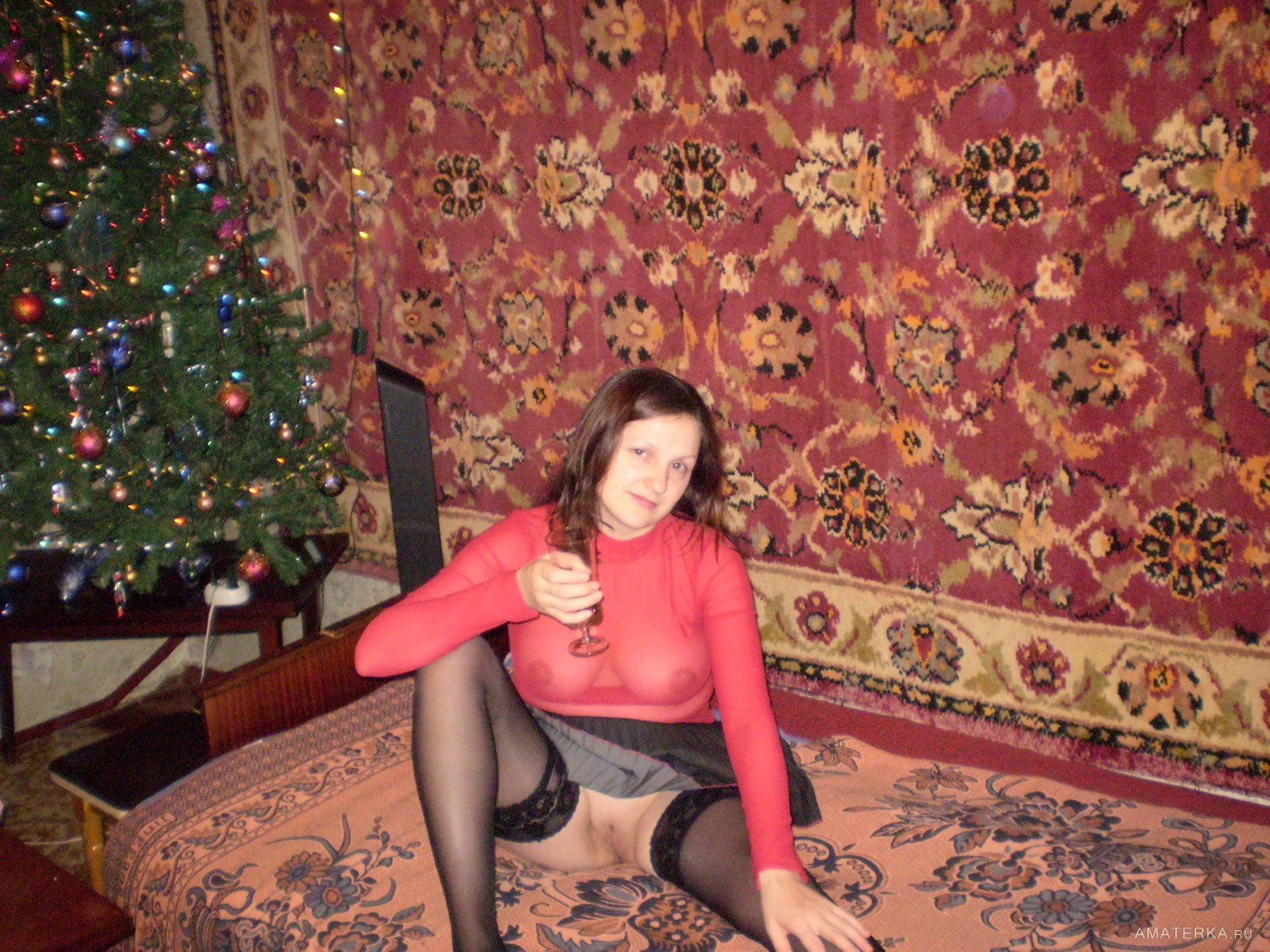 Новый Год в деревни баба отмечает без трусиков