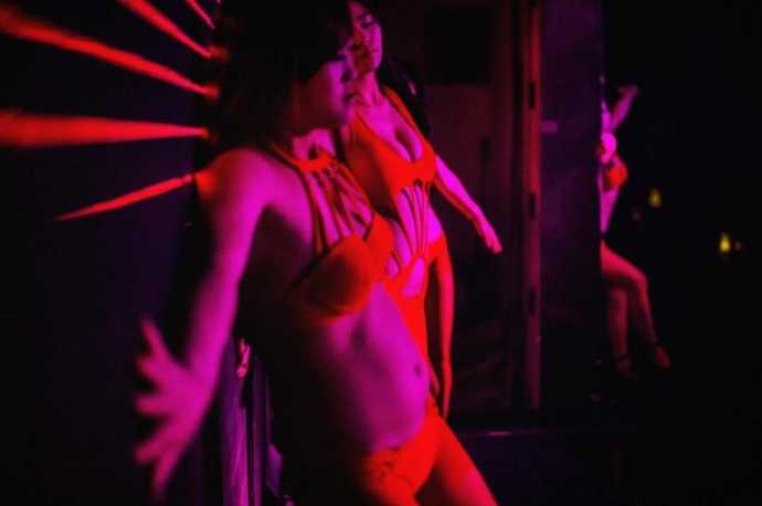 Невзирая на запрет стрип-баров и секс-бизнеса в Китае, ночные клубы все равно находят способы, чтобы удовлетворить низменные желания гостей. Украинский фотограф Сергей Мельниченко сделал серию снимков «За кулисами», которая началась в одном из подпольных ночных клубов Китая, где он работал танцором. Клуб больше похож на большой бар со сценой, здесь никто из гостей не танцует, зато опьяненные трансвеститы и стриптизерши купаются в кадках пива на потеху еще наиболее пьяных гостей.