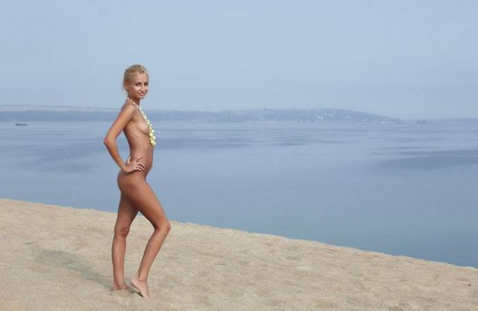 Уникальные фотографии из домашнего альбома. Блонда лежала голенькой с яблоком и ее снимали её лучшие друзья. Красивый загар покрывает сексуальную девушку и ее аппетитные прелести.