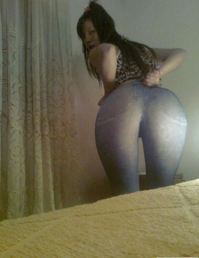 Классно смотрится и в обтягивающих джинсах, и в атласных шортиках, а стрингах – это просто улёт!Но самое откровенное фото в данной подборке – это попка, выглядывающая из-под очень коротенького платья. Абсолютного голая попа!