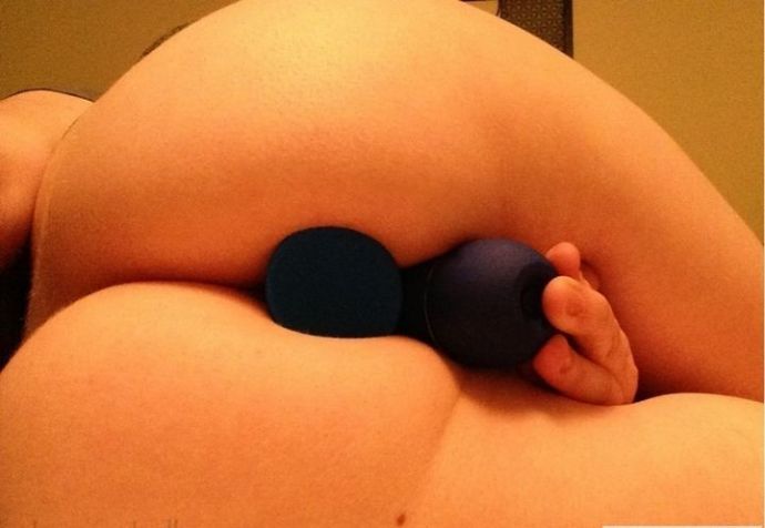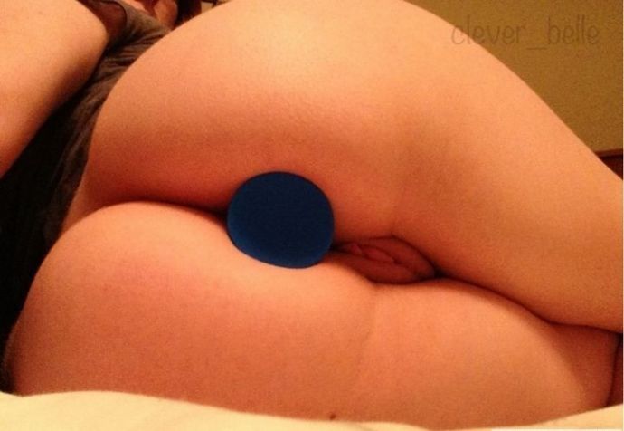 Пробка показывается из-под полосочки стрингов. На фото показано, как конкретно женщина вставляет в жопу эту пробку, также как потом затыкает иной секс-игрушкой влагалище…