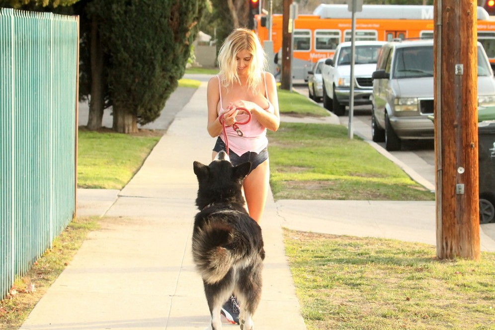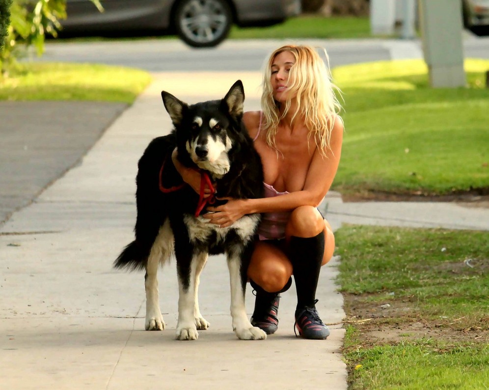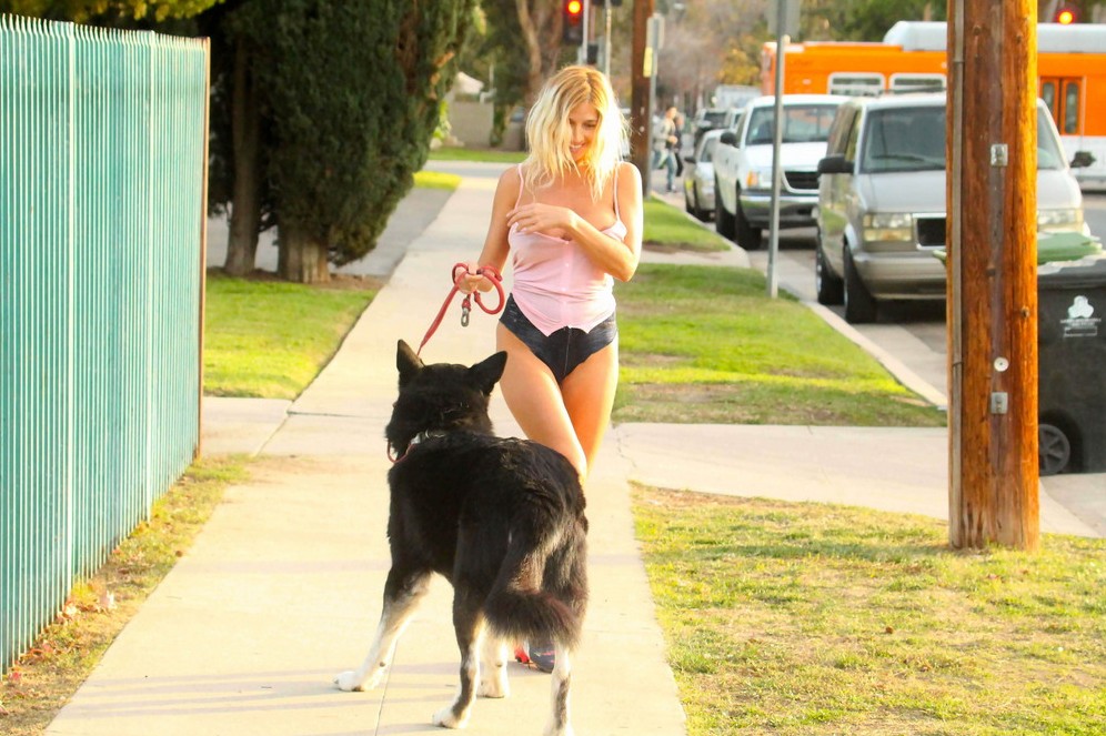 американская певица русско-французского происхождения Нади Волянова(Nadeea Volianova), которую еще называют «Российской Леди Гагой», засветила грудь во время прогулки с собакой в Беверли-Хиллз.