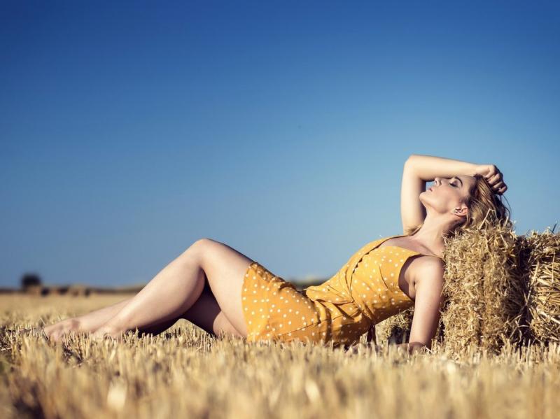 Фотосессия девушка красотка в поле в белье