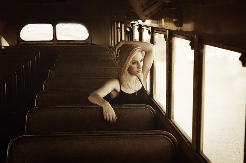 Фотосессия девушка красотка в трамвае