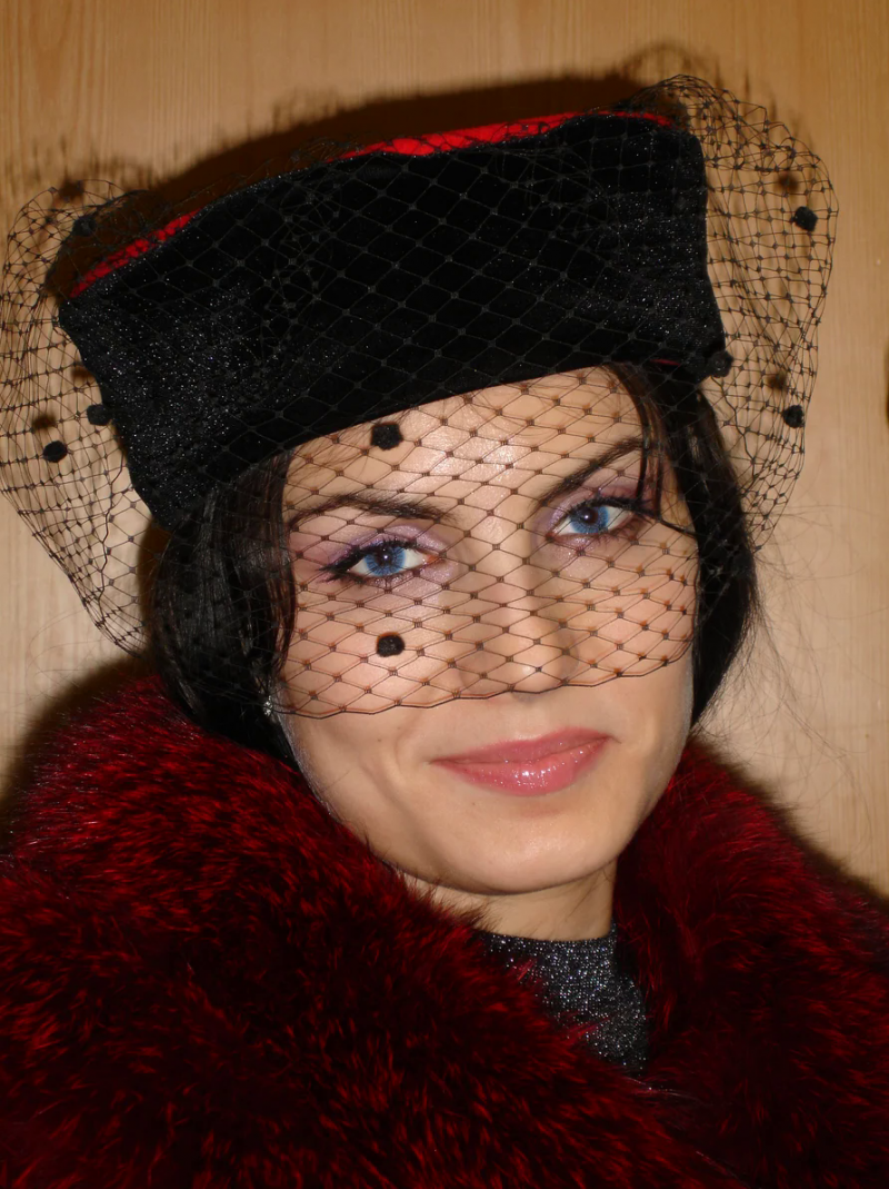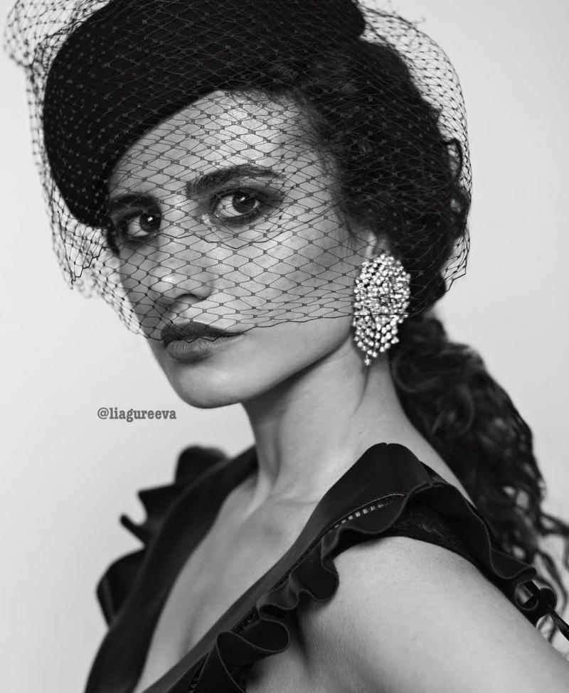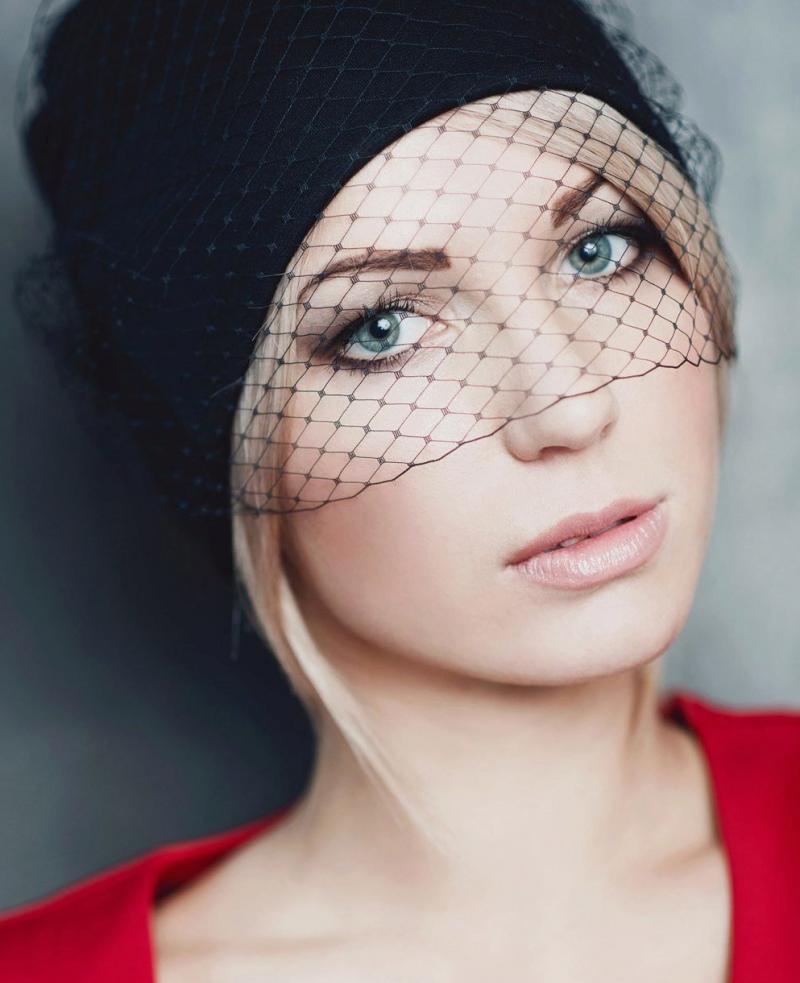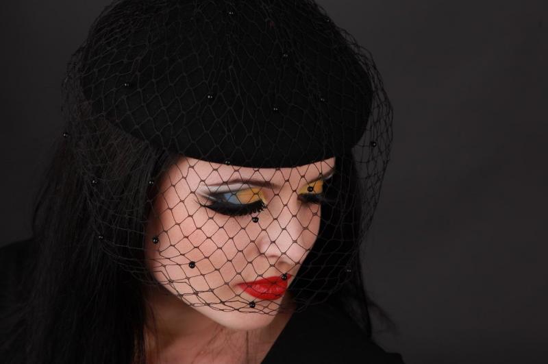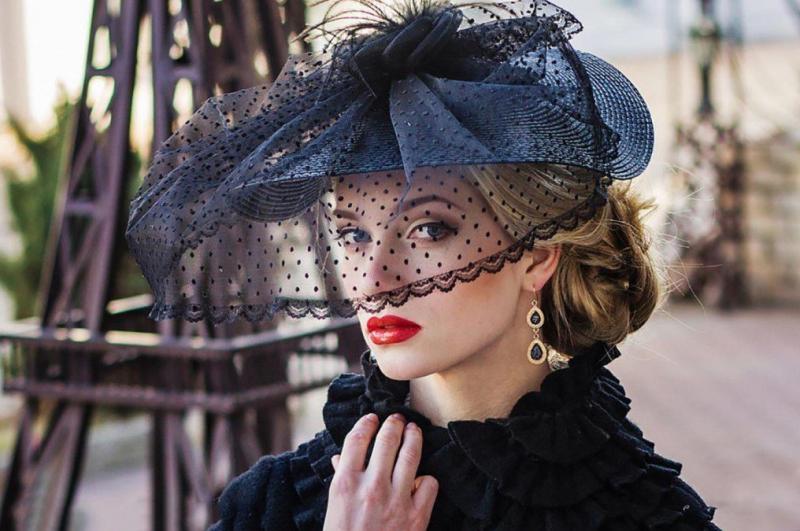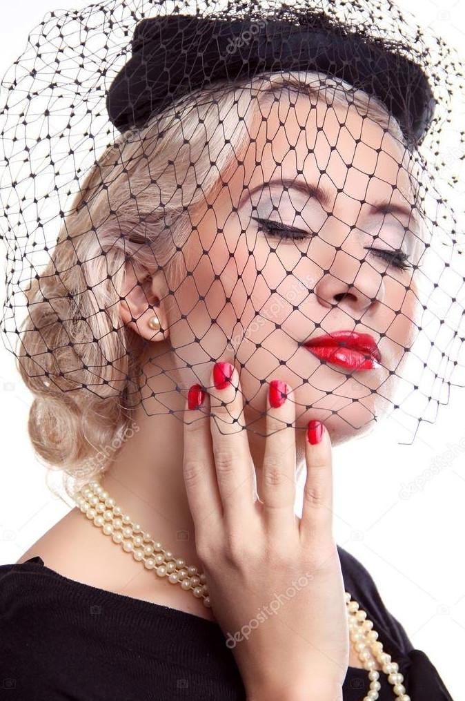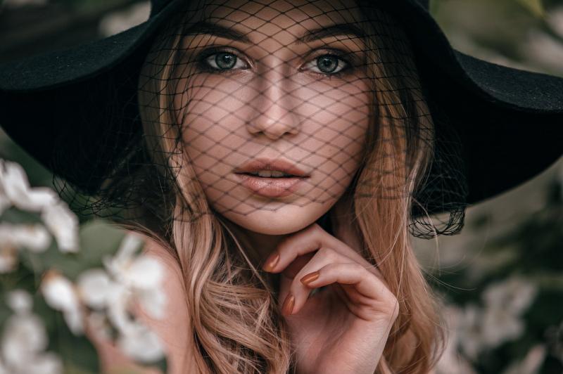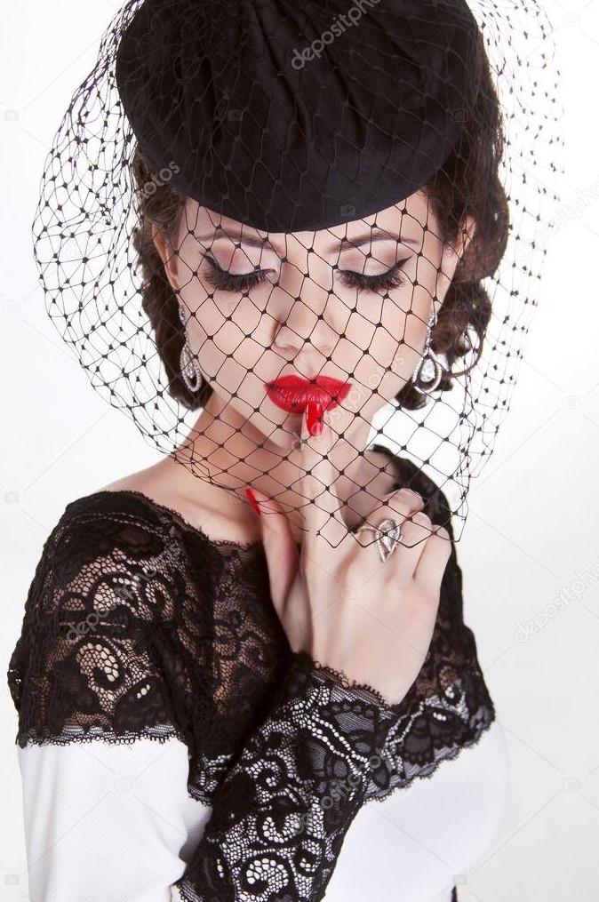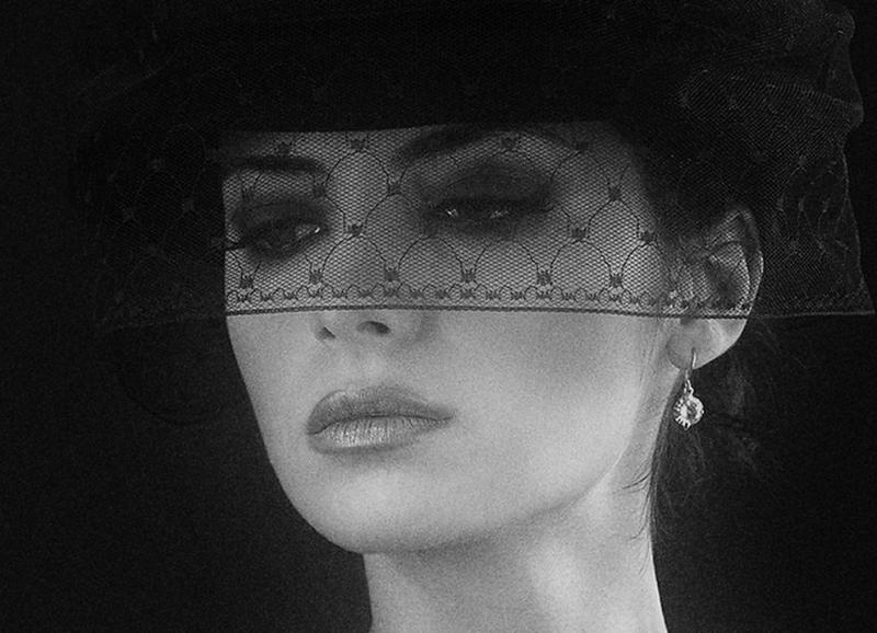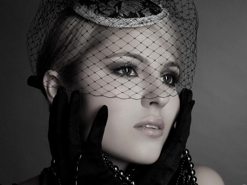 Девушка красотка в шапке черно белоснежное фото с вуалью