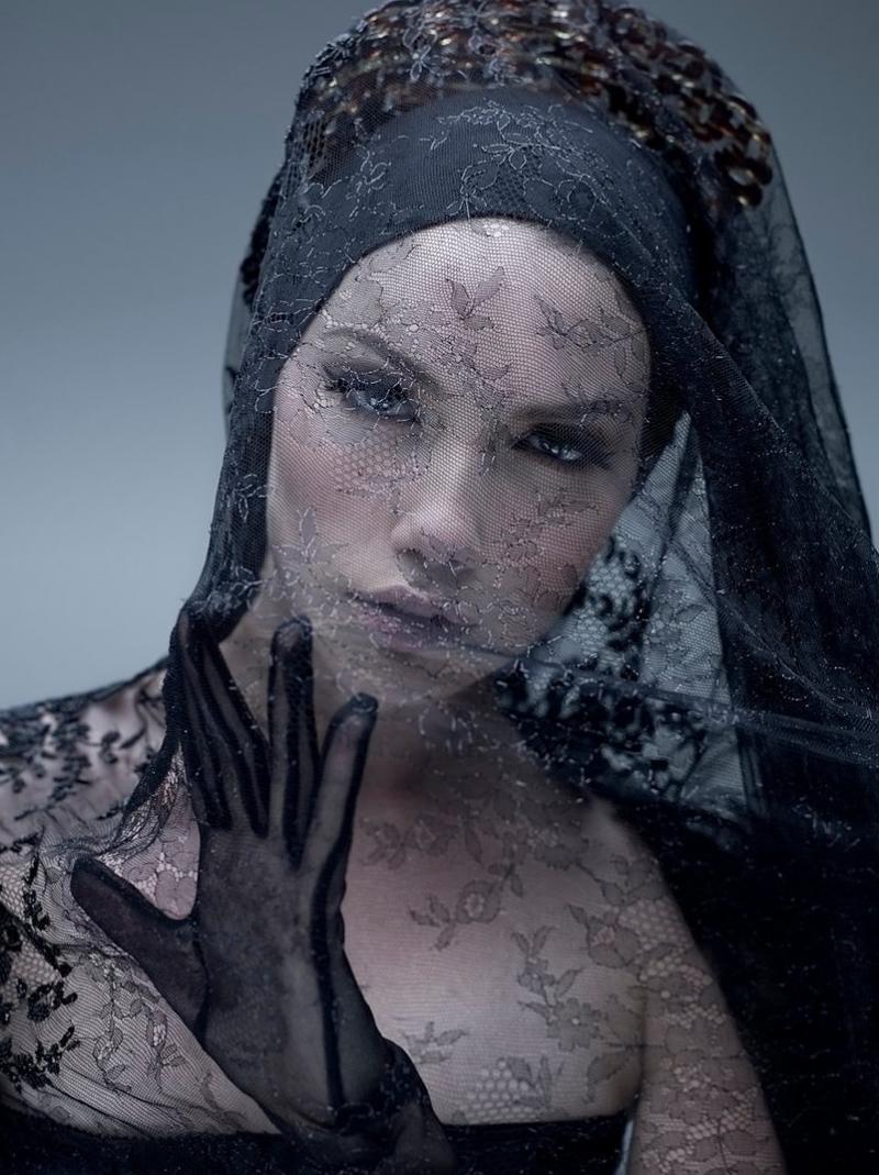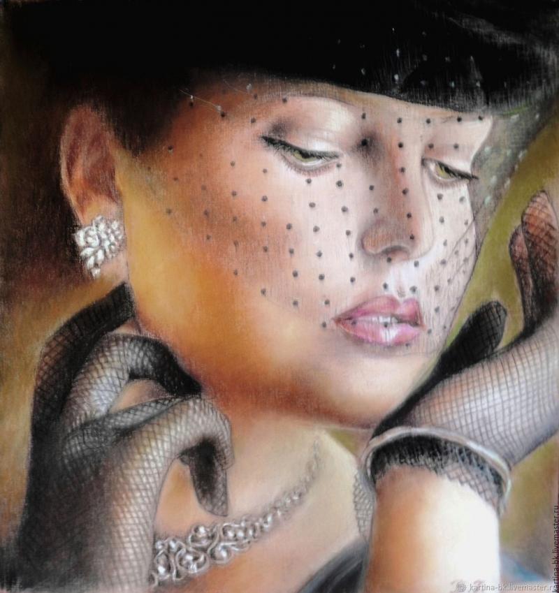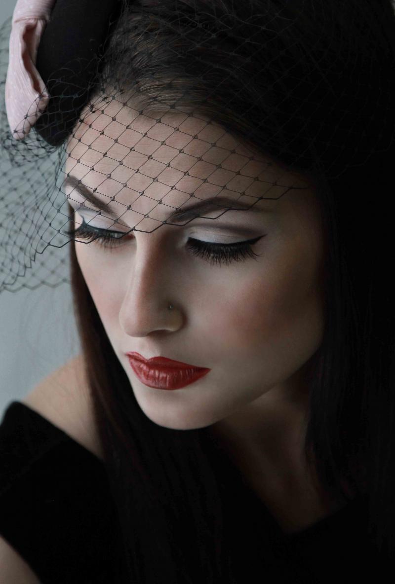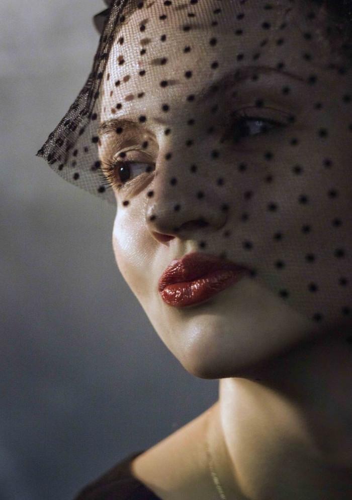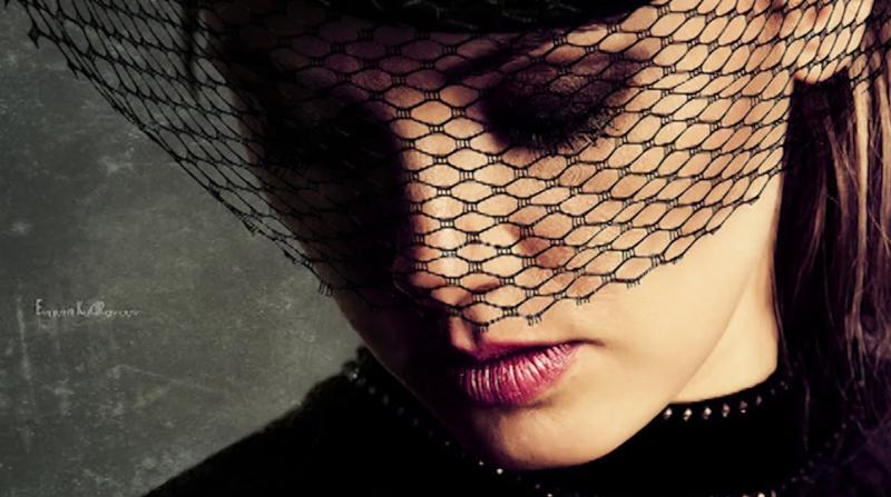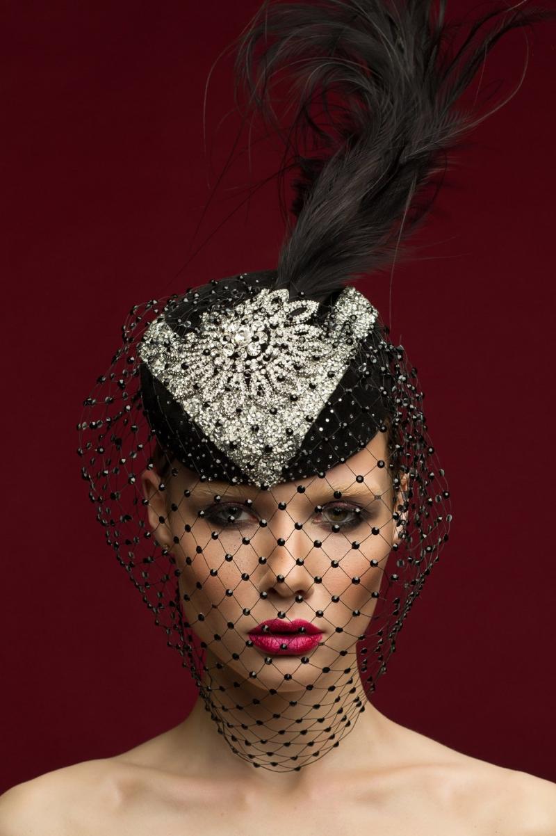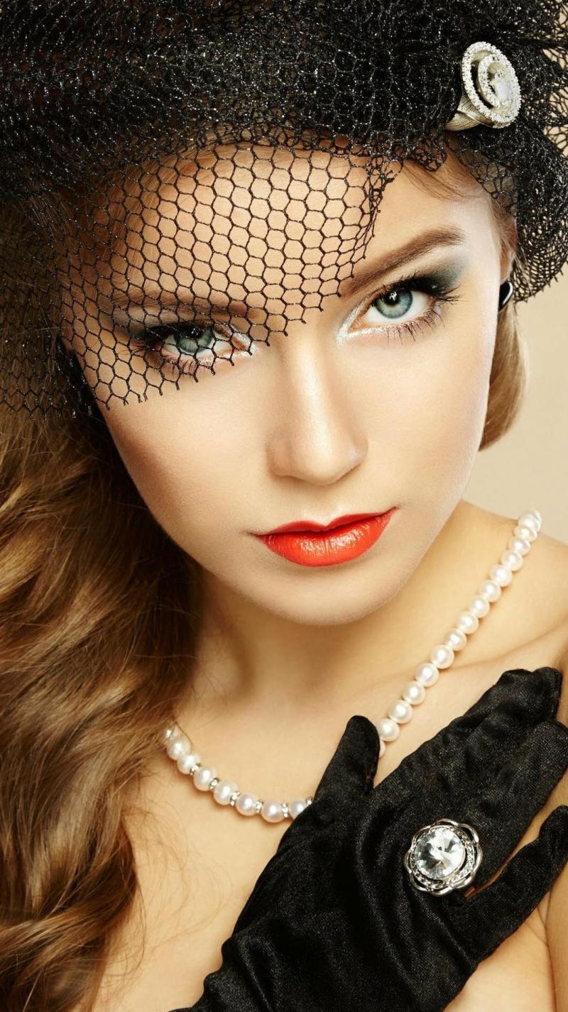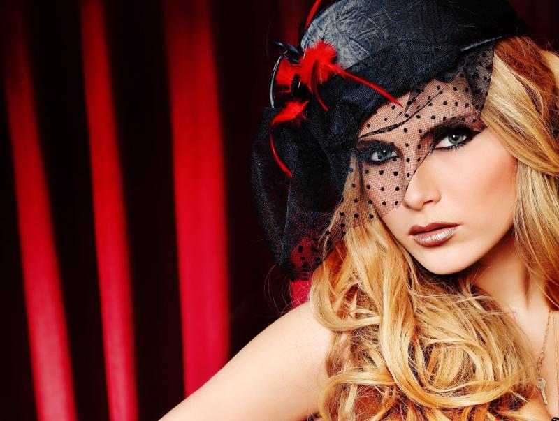 Девушка красотка в шапке черно белоснежное фото с вуалью