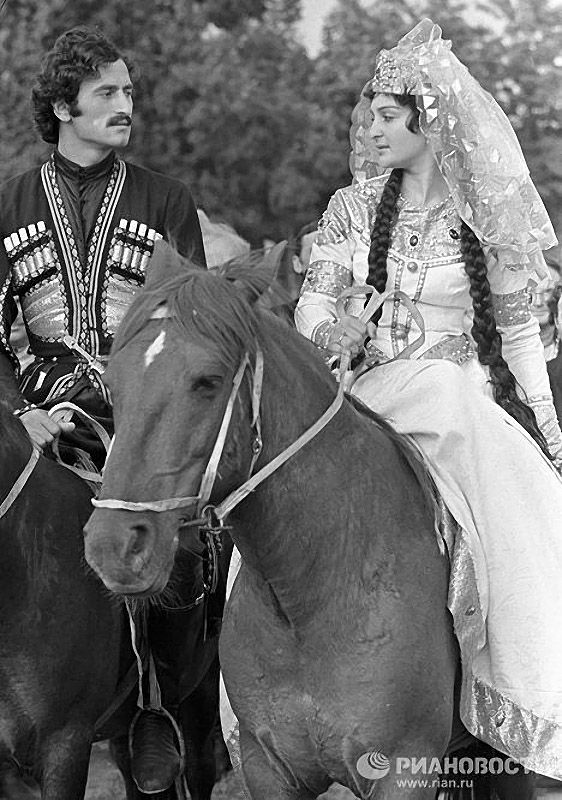 В некоторых регионах многонационального Союза свадебный ритуал выглядел очень ярко и колоритно. Например, грузинская невеста должна была уметь не только остановить коня на скаку, но и при необходимости его оседлать.