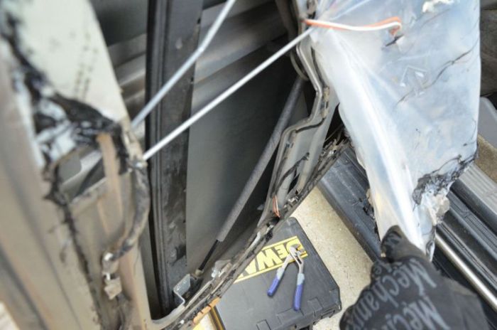 У 1-го парня из сети закончил работать электростеклоподъемник на задней двери его подержанного внедорожника. Он решил своими руками починить его, но для этого требовалось снять дверную карту и обшивку с двери. Молодой человек был чрезвычайно удивлен, когда снутри двери нашелся странноватый темный пакет. Что еще оставалось сделать?Конечно же, он решил его вскрыть и поглядеть, что все-таки находится снутри.