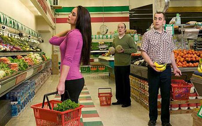 Очередная порция взглядов парней на соблазнительные части дамского тела Как бы мужчины не пробовали сделать это незаметно, такие взоры просто нереально скрыть. Кстати, это касается не только лишь парней))