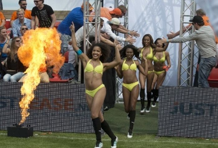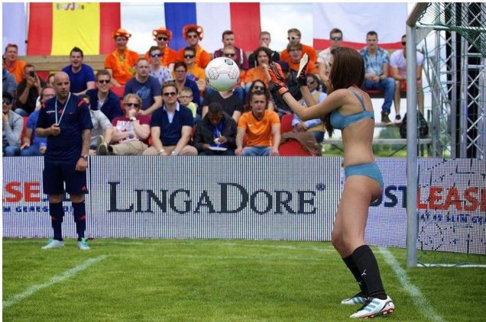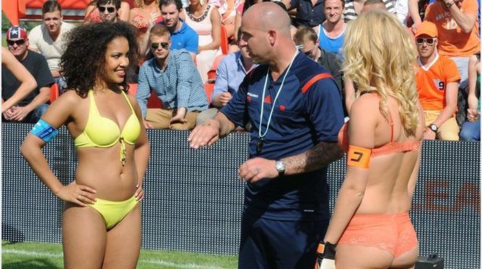 этот красивый день я предлагаю тебе насладиться фотоотчетом с чемпионата мира по футболу в нижнем белье, который состоялся в Голландии. Конечно же, симпатичные девушки показали болельщикам не только лишь проф приемы игры, но и блеснули красотой тела. Приятного просмотра
