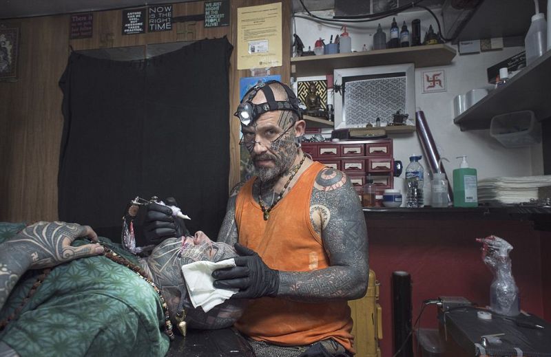 В его объектив попали наиболее 30 англичан с приметными тату на лице. И все эти люди ведут полностью обыденный стиль жизни.