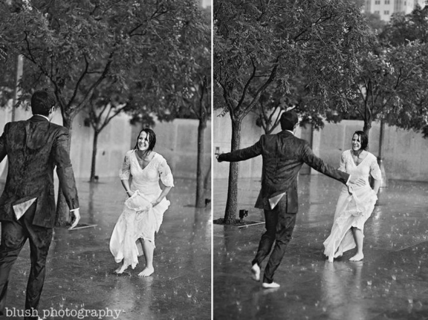 Свадебные фото молодожен в дождь