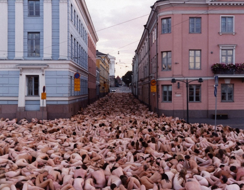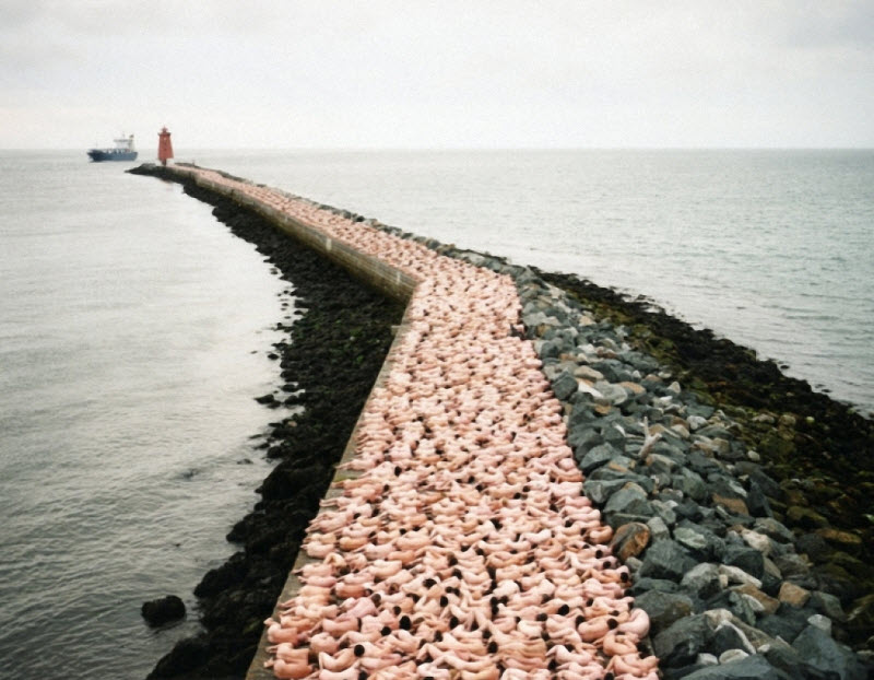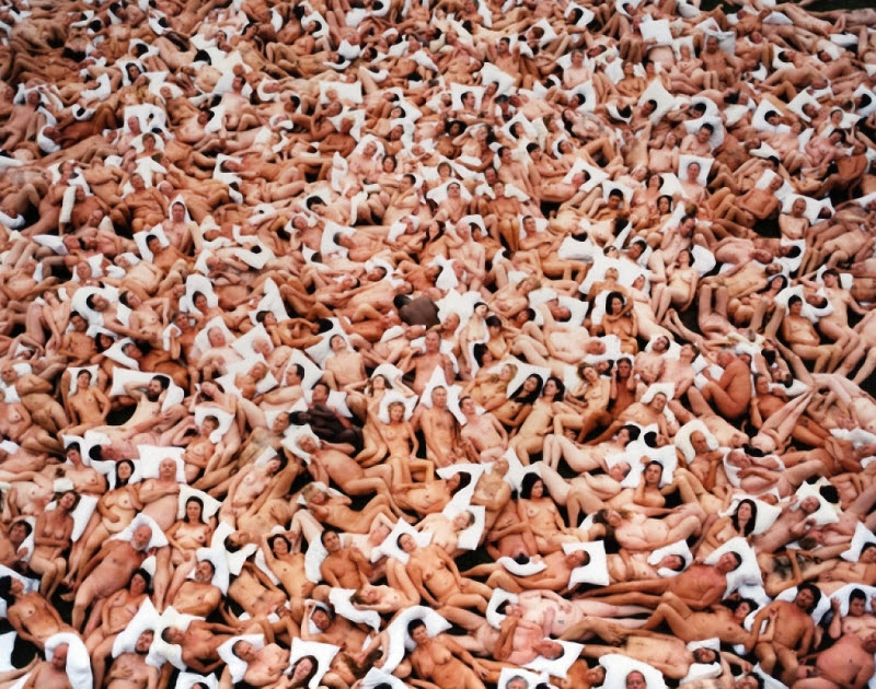 5. В его «живых арт-инсталляциях» участвует в среднем около 2000 человек. И никогда нет заморочек, чтоб собрать огромное количество желающих позировать обнаженными.