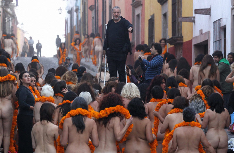 Это было прохладное туманное утро. Многие обитатели Сан-Мигель-де-Альенде еще спали, когда в историческом центре городка возникли голые дамы. 110 дам в возрасте от 20-ти до 60-ти лет приехали из различных уголков Мексики и США, чтоб в течение практически 2-ух часов делать команды фотографа Спенсера Туника. Фотограф стал известен во всем мире монументальными арт-инсталляциями сделанными из обнаженных тел. Такие проекты Спенсер Туник делал в самых различных городках мира. Смотрите спорные и громкие работы фотографа обнаженных людей.