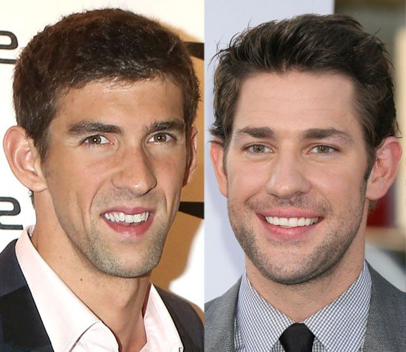 Прическа быть может разной, но ухмылку и цвет волос скрыть нереально. 22-кратный олимпийский фаворит по плаванию, Майкл Фелпс оказался фактически четкой копией актера Джона Красински, известного по телесериалу The Office. Почти шестилетняя разница в возрасте никак не отражается на их наружном виде. Если когда-либо биография Майкла Фелпса послужит источником для сценария, то, быстрее всего, его роль будет играться конкретно Джон Красински.