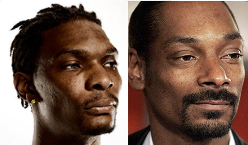 Бывший игрок Toronto Raptor, и сегодняшний Miami Heat, Крис Бош необычным образом похож на всем знакомого старенького рэпера, известного под псевдонимом Snoop Dogg. Их мимика и черты, не говоря уж о прическах, являют собой предмет необычного сходства, а ежели принять во внимание, что они оба – нередкие гости в судах, то тут остается только развести руками и просто признать их идентичность.