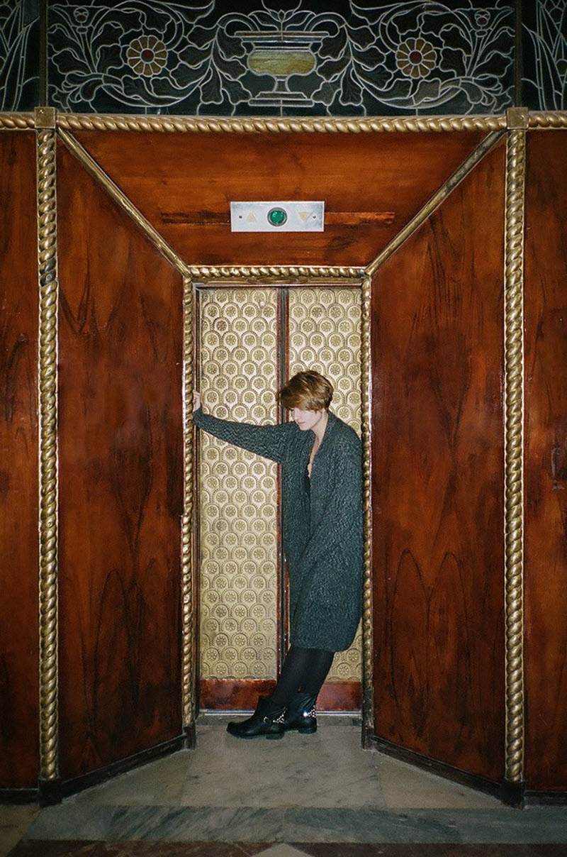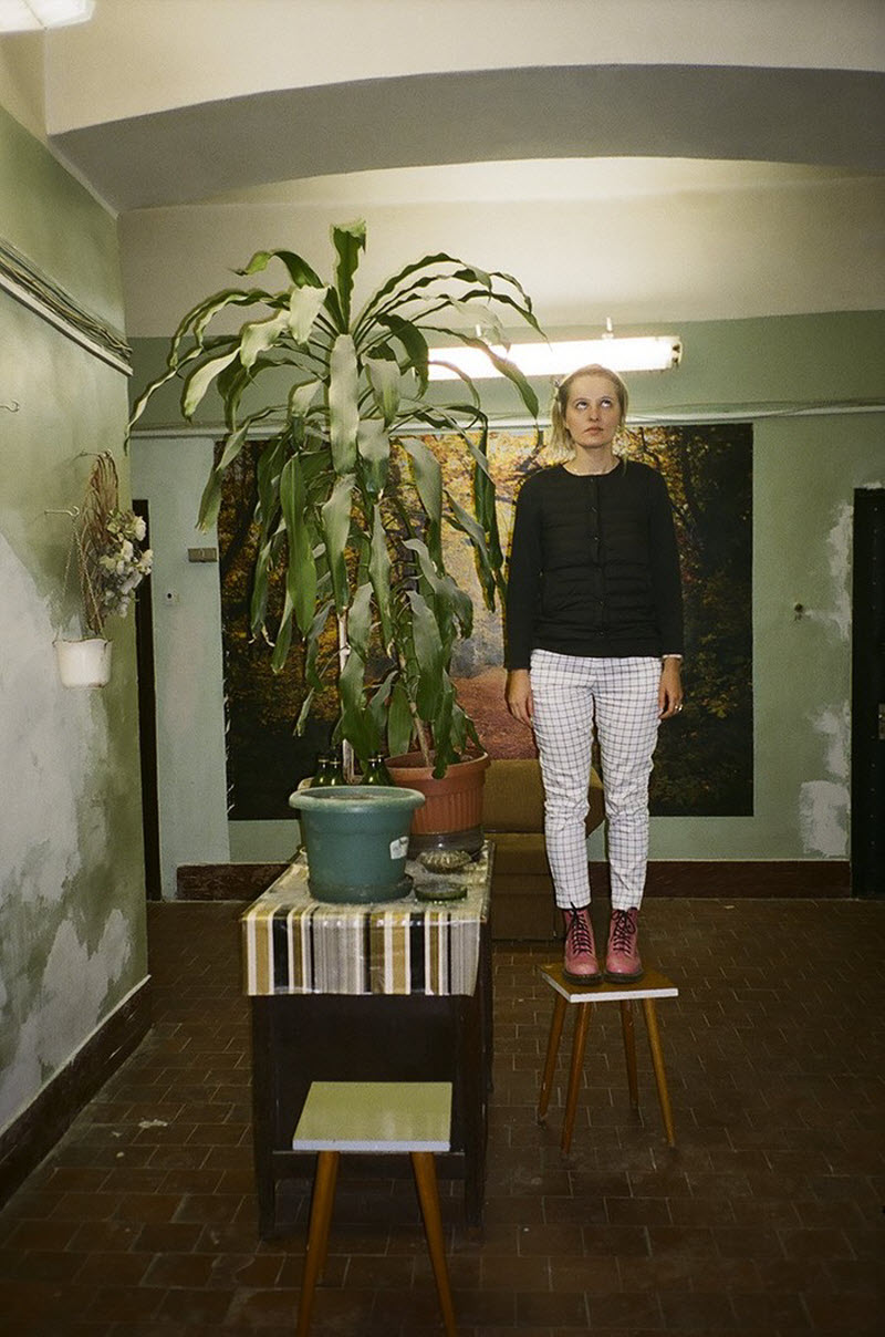 «У него был такой свой характер — идеальные декорации: российский флаг, календарь с Путиным, календарь с козой (по китайскому календарю наступил год Козы) и гигантская новогодняя елка, — рассказывает Беджанова. — Я сфотографировала в подъезде подругу, которая изобразила из себя консьержку, и выложила в инстаграм, получилось очень круто. Затем я обратила внимание, что у каждого постсоветского подъезда есть своя изюминка: растения, елки, странные украшения. Нужно лишь добавить девушку и взять фотоаппарат Olympus».