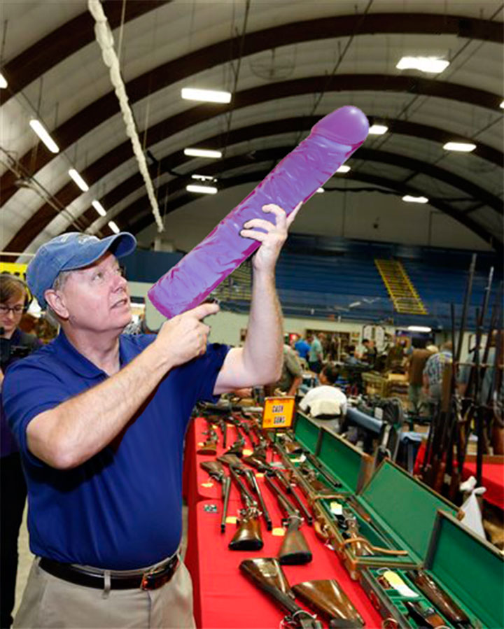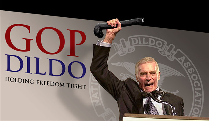 Американец Мэтт Хоги запустил онлайн-кампанию под хэштегом #GOPDildo. В рамках акции он на фото заместо орудия помещает в руки политикам секс-игрушки.