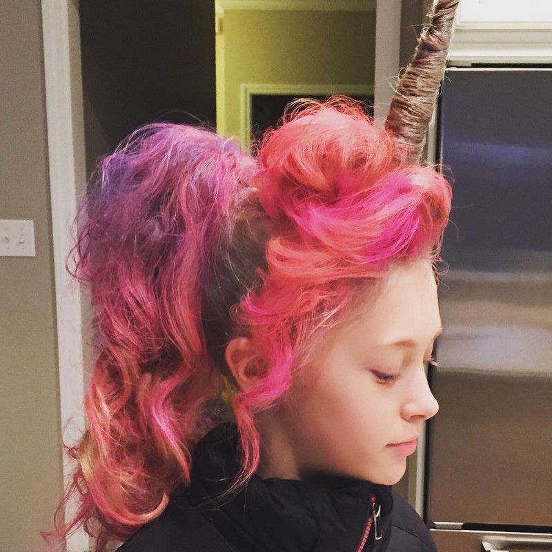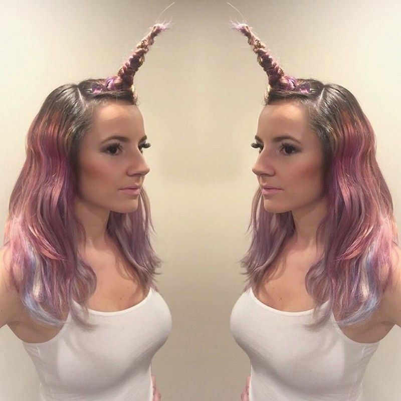 Среди барышень в последнее время начала набирать популярность прическа под единорога. Дамочки в надежде походить на сказочное существо крутят на голове косы, но в результате это выглядит так, словно у них на лбу выросло мужское хозяйство.