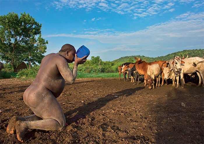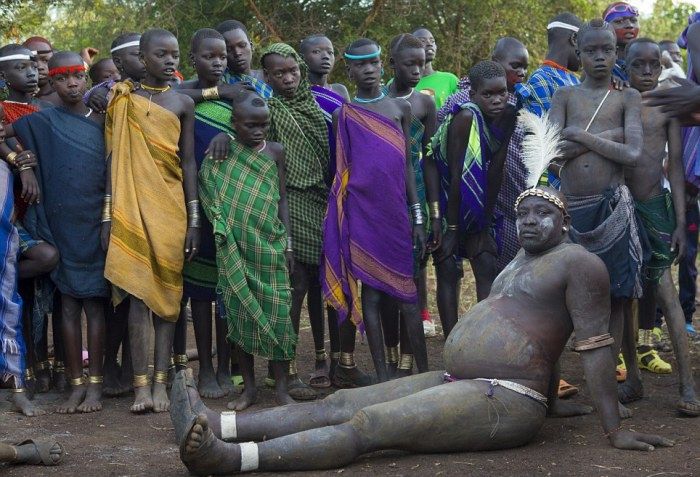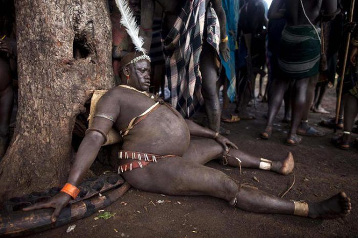 У эфиопских племен долины Омо, тех самых, что мастерят украшения из мусора, красота мужчины меряется размером его живота. Тамошние молодые и неженатые мужики употребляют в пищу только жирное молоко и кровь коров и сидят в хижине, чтобы мамон вырос побольше.