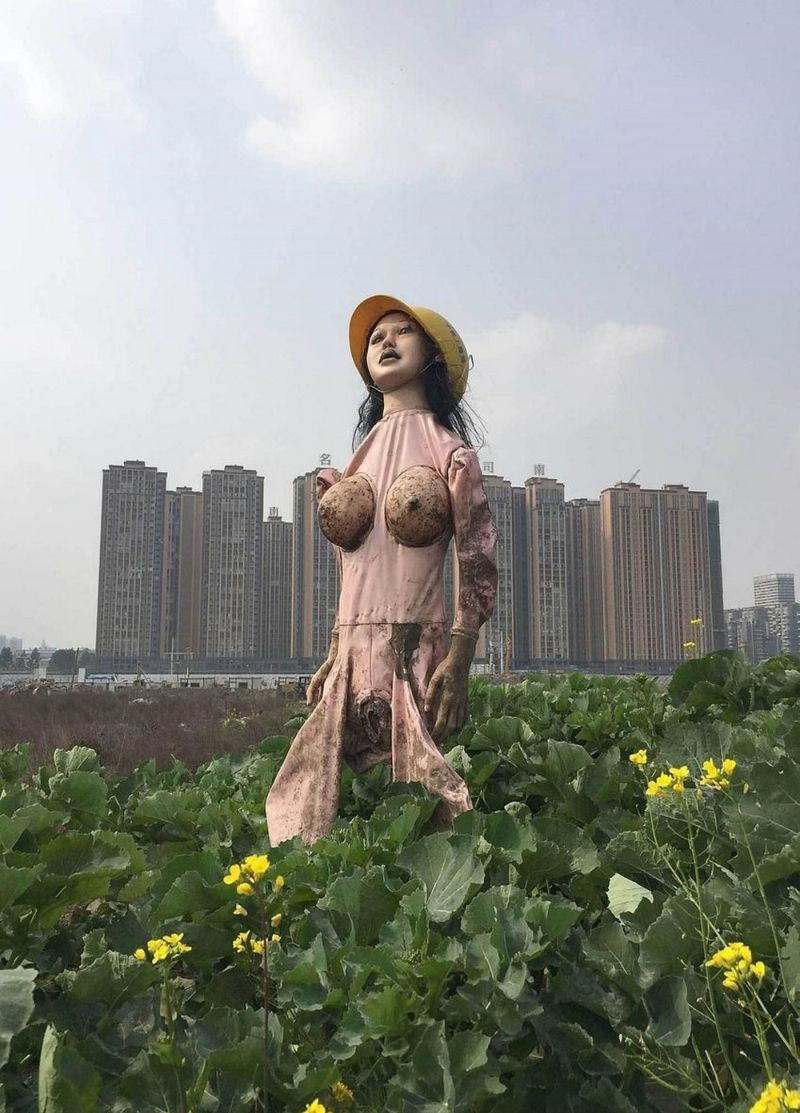 Один китайский крестьянин, ведущий хозяйство рядом с мегаполисом, отыскал на свалке брошенную кем-то изрядно потасканную резиновую бабу. И смастерил из нее пугало. Кто бы мог поразмыслить, что секс-кукла непревзойденно подойдет для данной задачки. Особенно, ежели на нее надеть строительную каску.