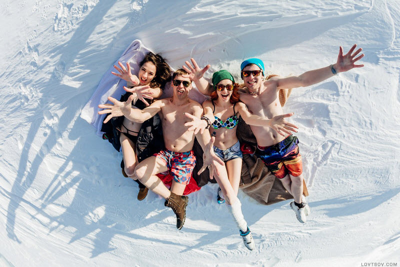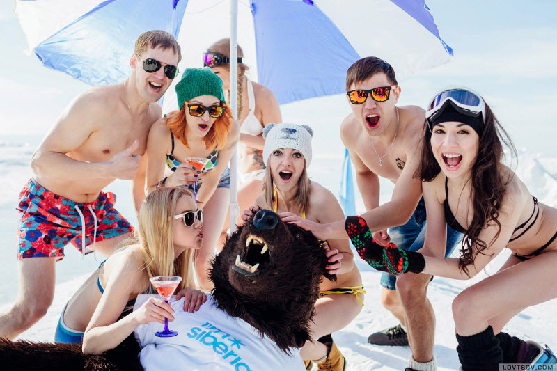 На Байкале устроили вечеринку в купальниках при температуре -20°С
