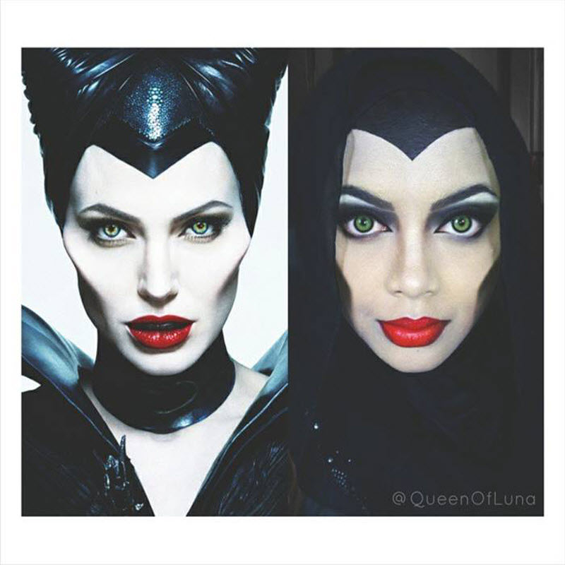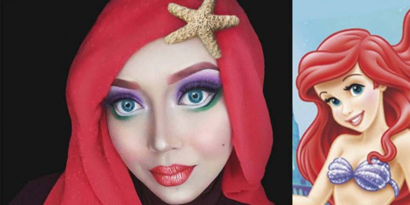 Девушка с помощью хиджаба и макияжа превращает себя в диснеевских персонажей
