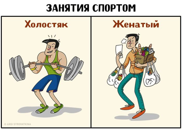 Жизнь мужика после свадьбы 07 июня, 2016 1 759 Порция классных картинок о том, как меняется жизнь мужчины после вступления в брак +1 Рубрика: Интересное