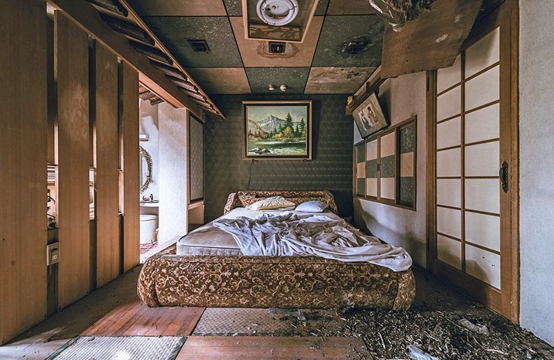31-летний фотограф Боб Тиссен побывал в заброшенном японском секс-отеле с тематическими номерами, которые сдавались любовникам почасово. Любовная гостиница закрылась еще 17 годов назад, но мебель и предметы интерьера остались фактически нетронутыми, так как местные обитатели обходят отель десятой дорогой.