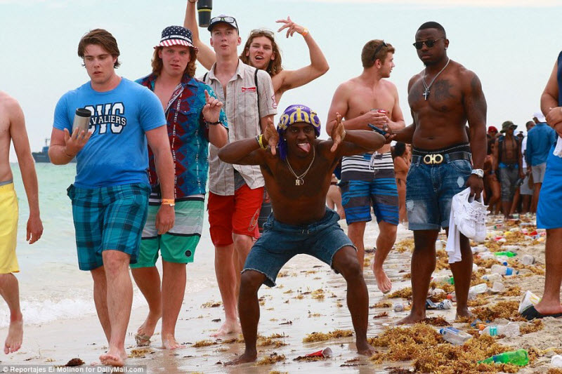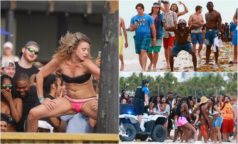 Тысячи студентов института прибыли на Южный пляж в Майами за первую недельку весенних каникул. Полиция Майами-Бич наняла доп персонал для контроля гулких вечеринок. Несмотря на ограничения в неких областях на распитие алкоголя, громкую музыку и количество человек, студентов они не останавливают. Молодые люди устраивают одичавшие вечеринки с множеством алкоголя, дерутся, фактически голые пляшут тверкинг перед вялыми полицейскими и оставляют после себя кучи мусора на пляже.
