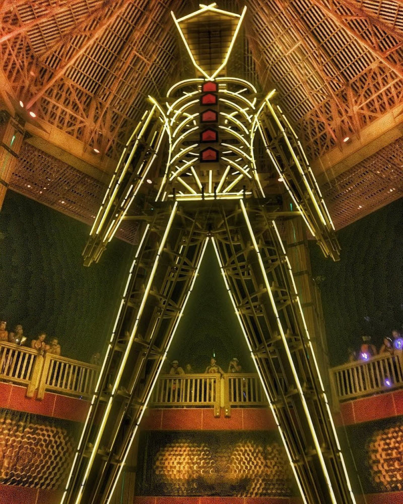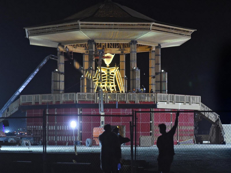 После заката в последний день сжигают деревянную фигуру в центре лагеря — поэтому фестиваль и называется «Горящий человек».