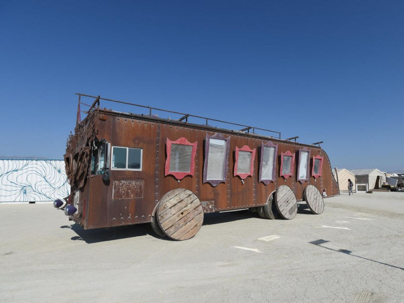 На территории запрещены обычные автомобили, поэтому здесь передвигаются на велосипедах и так называемых арт-карах — творчески преобразованных механизмах. Костюм лучше тоже сделать самому.
