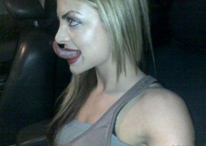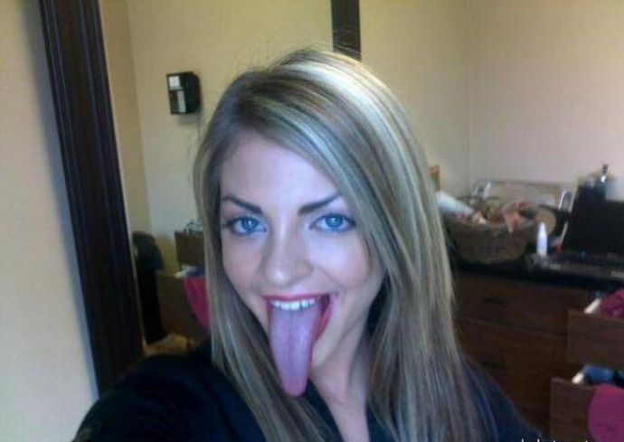 Вроде на первый взгляд симпатичная девушка, да так и есть, но есть у неё одна изюминка, хорошо или плохо - пишите в комментариях это её громадный язык.