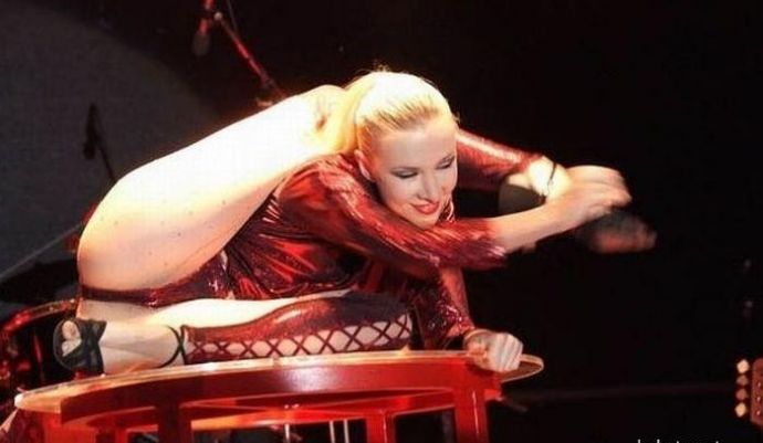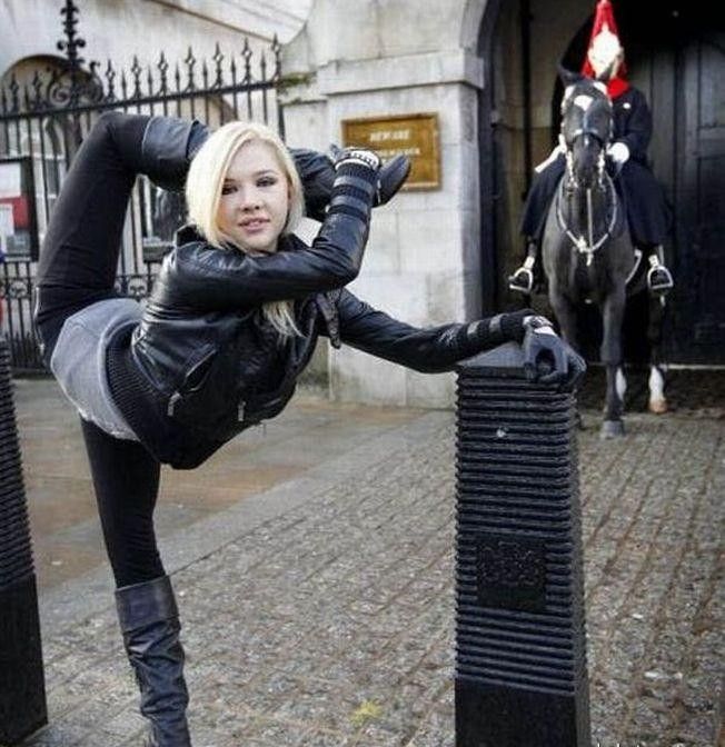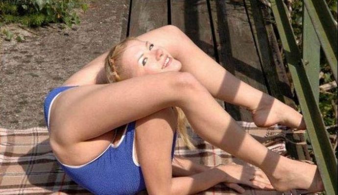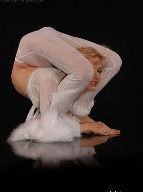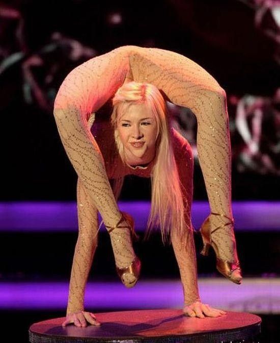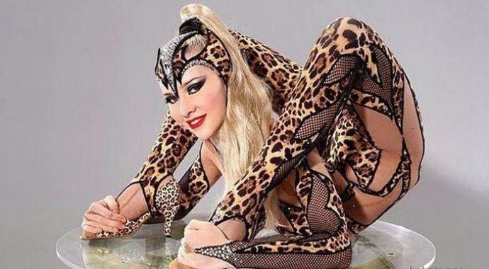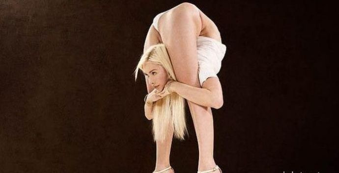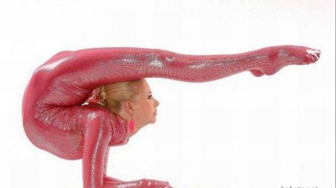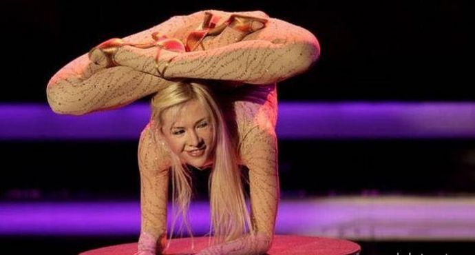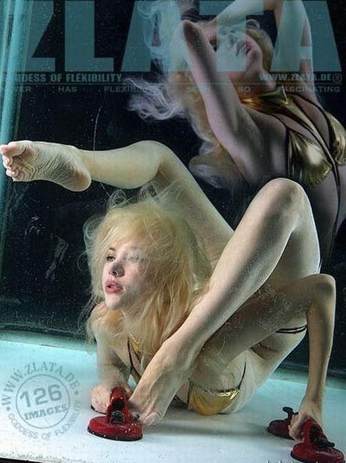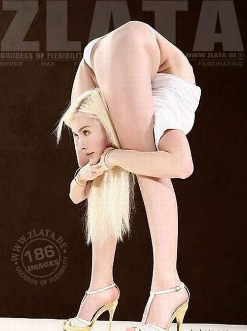 Злата - самая гибкая девушка в мире, которая может поместится в небольшом чемодане или спрятаться в холодильник, а также сложить голову к коленям так, что кажется, что её переломили пополам.