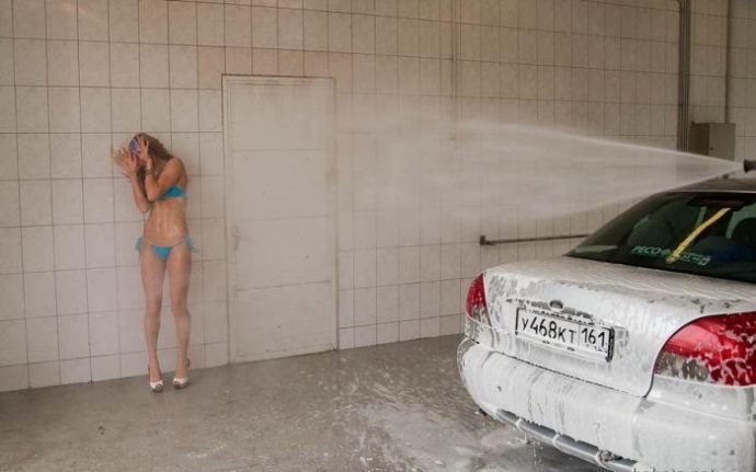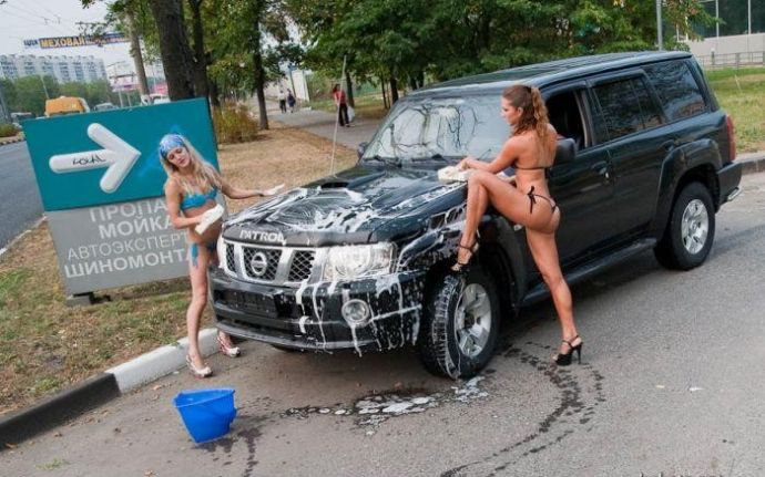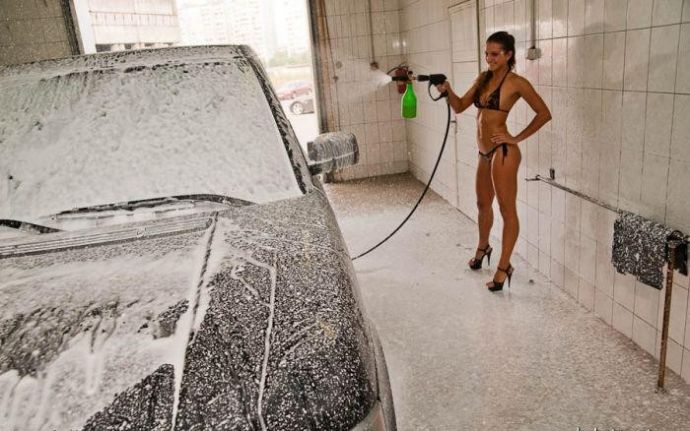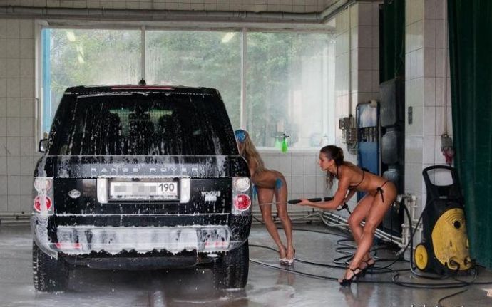 Что только не придумают предприниматели ради денег. Так вот есть в Москве автомойка, где почти голые стройные девушки в узких трусах отдерут твой автомобиль до блеска за 35 баксов.