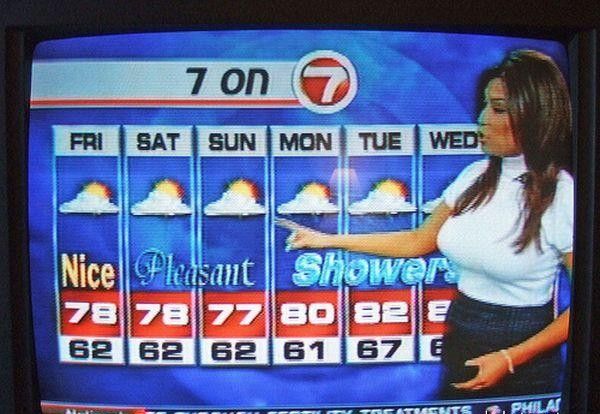 Для меня пусть всегда идёт за окном дождь, коль такие сексуальные ведущие ведут прогноз погоды. Можно и в стриптиз бар не ходить, все можно узреть не вставая с дивана.