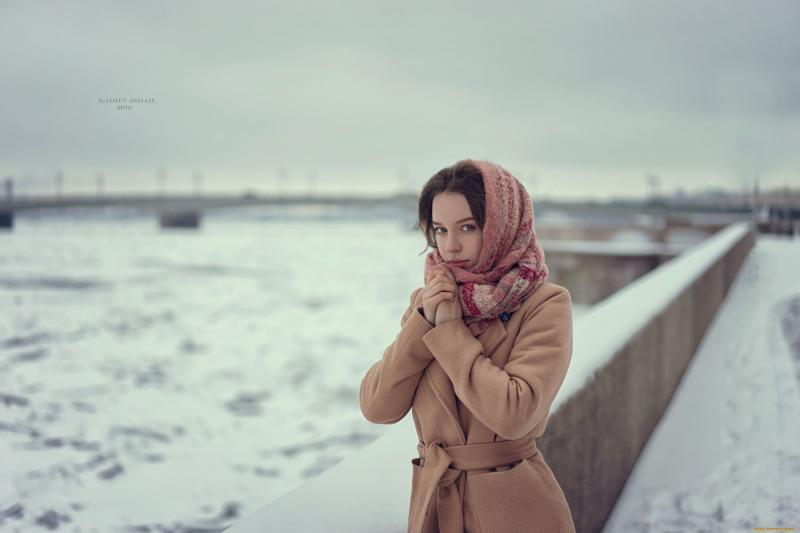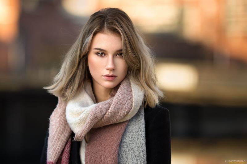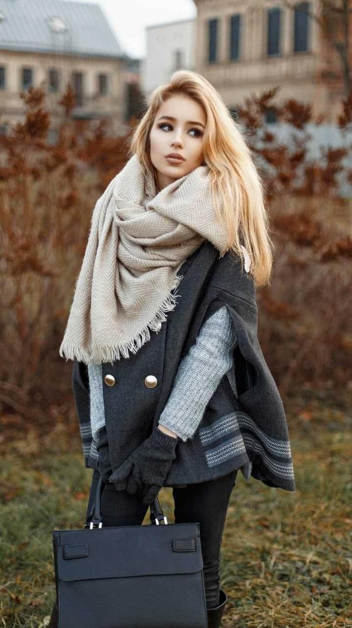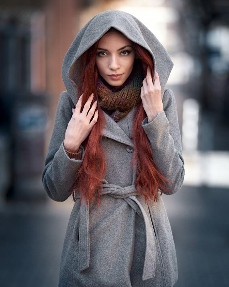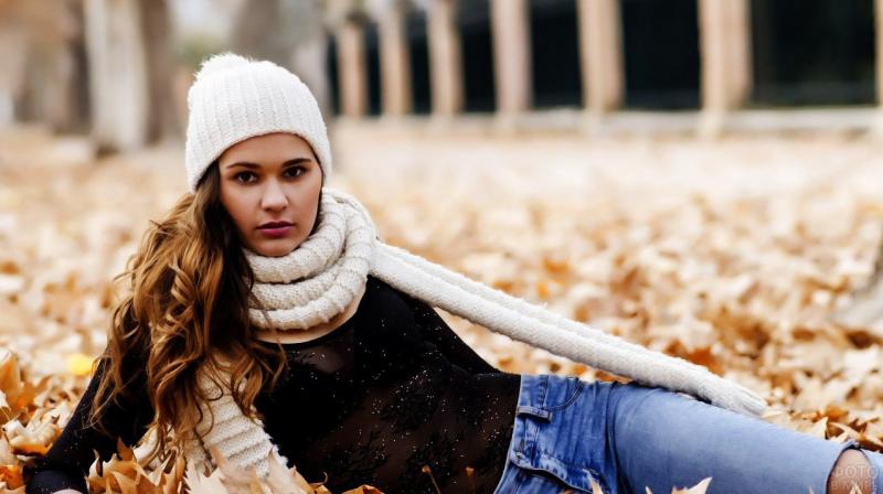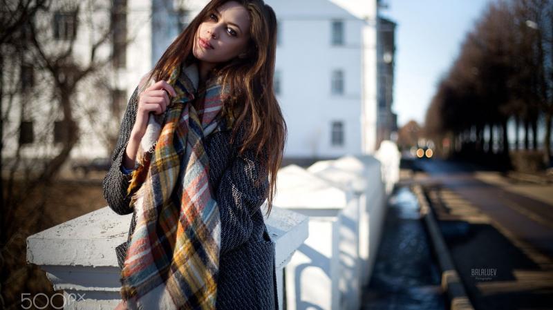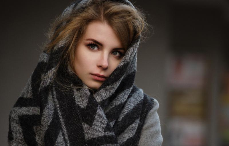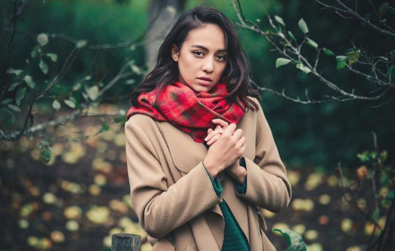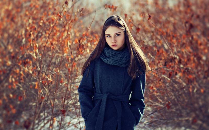 Фото девушки в шарфе пальто осень размытое лицо домннве темные волосы