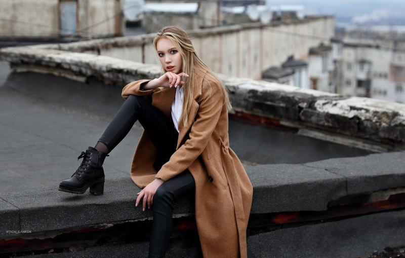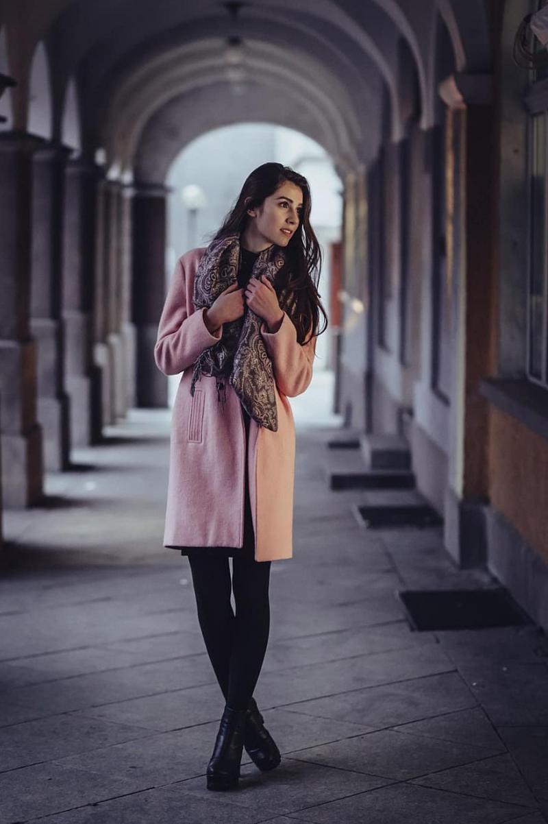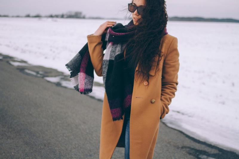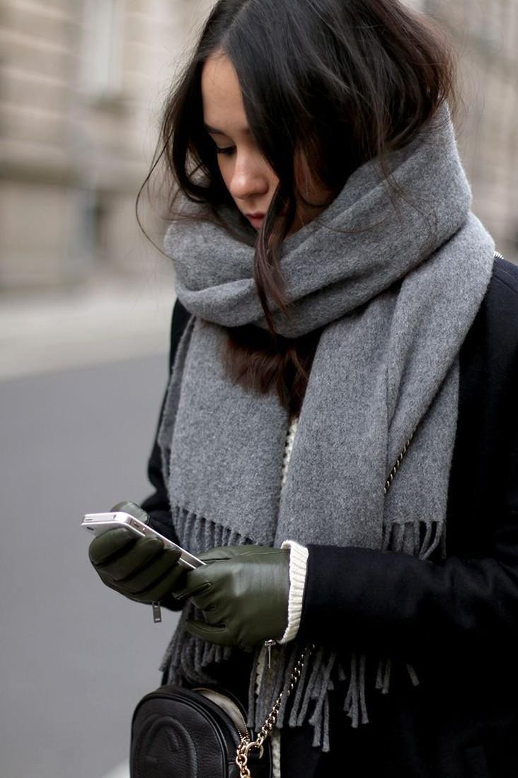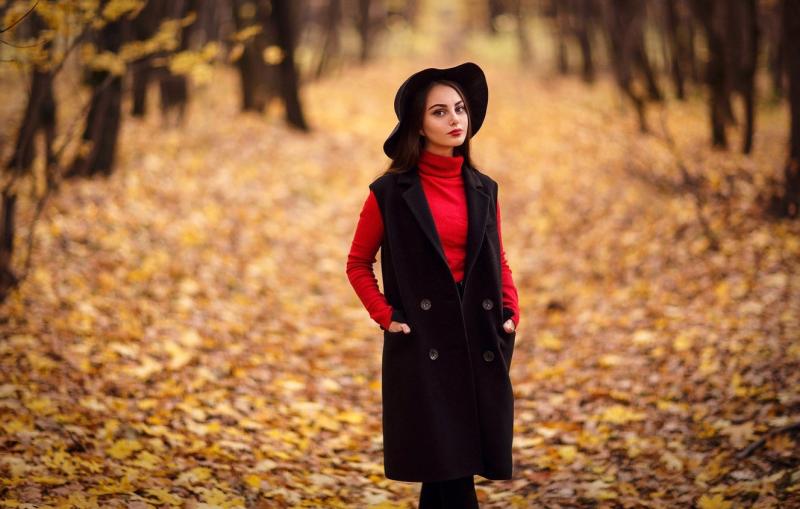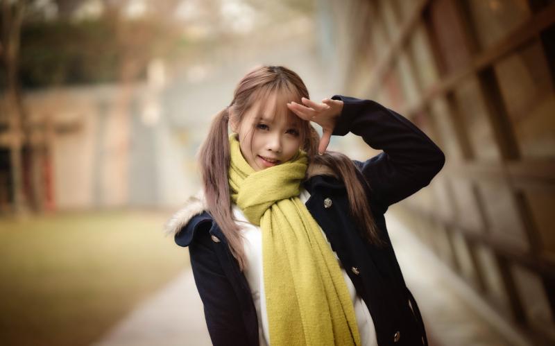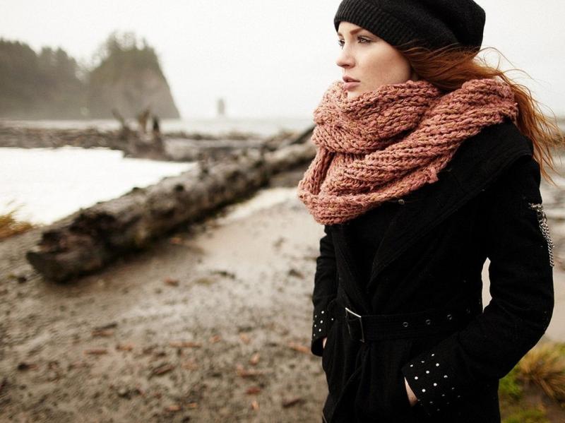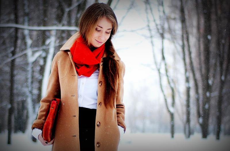 Фото девушки в шарфе пальто осень размытое лицо домннве темные волосы