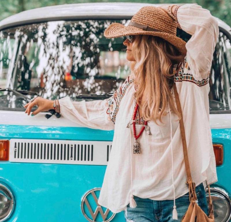 Топ-тренды стиля бохо и хиппи 2024: Девушка в Zara аутфите и фотосессия
