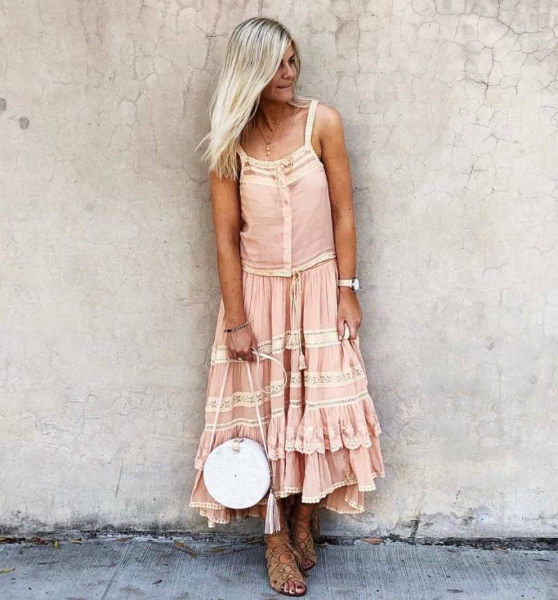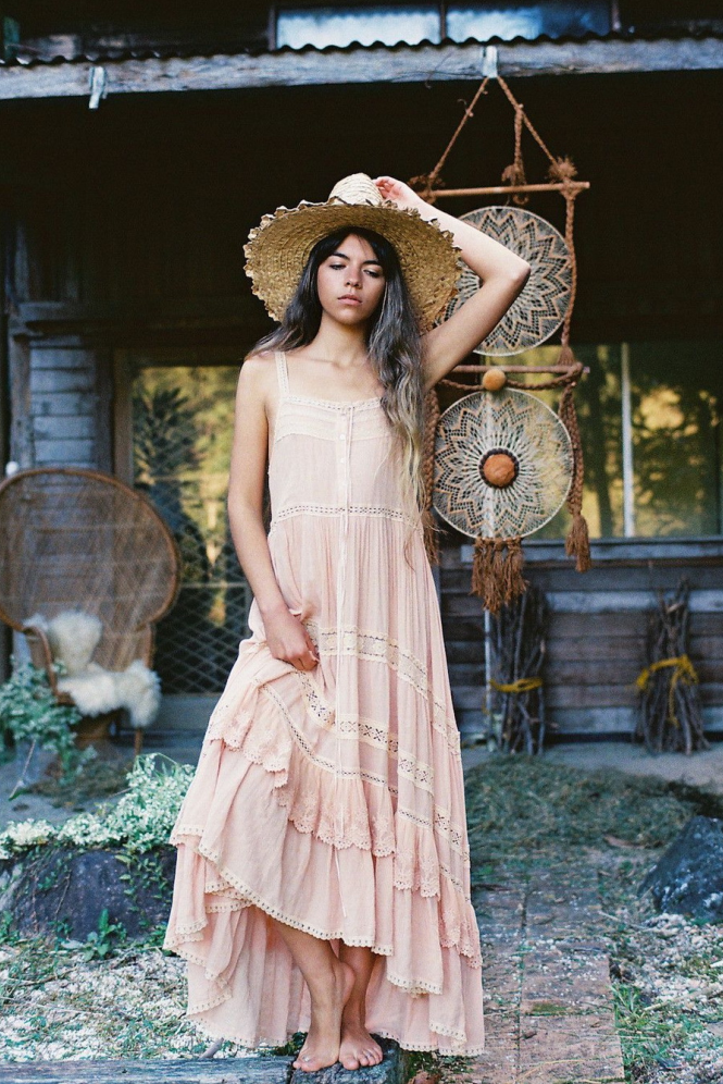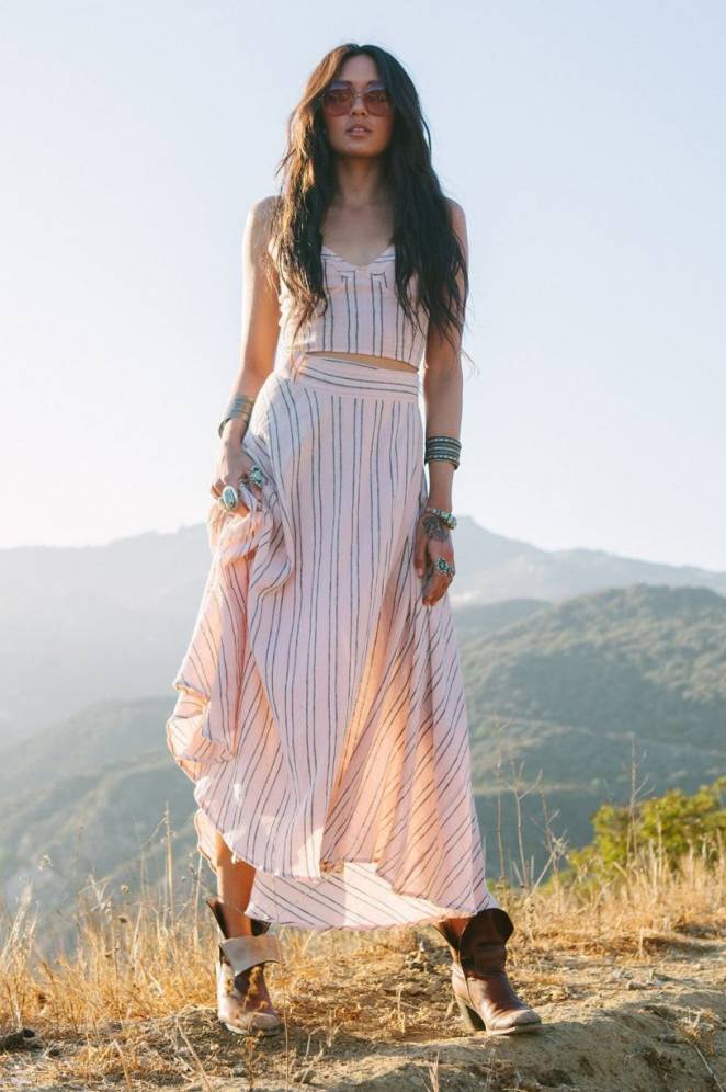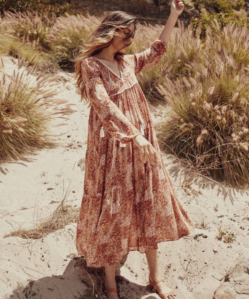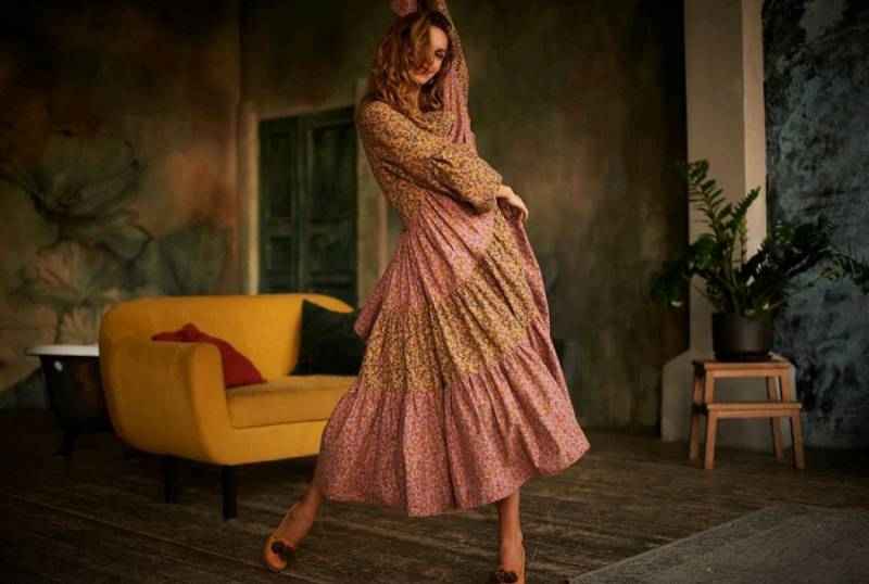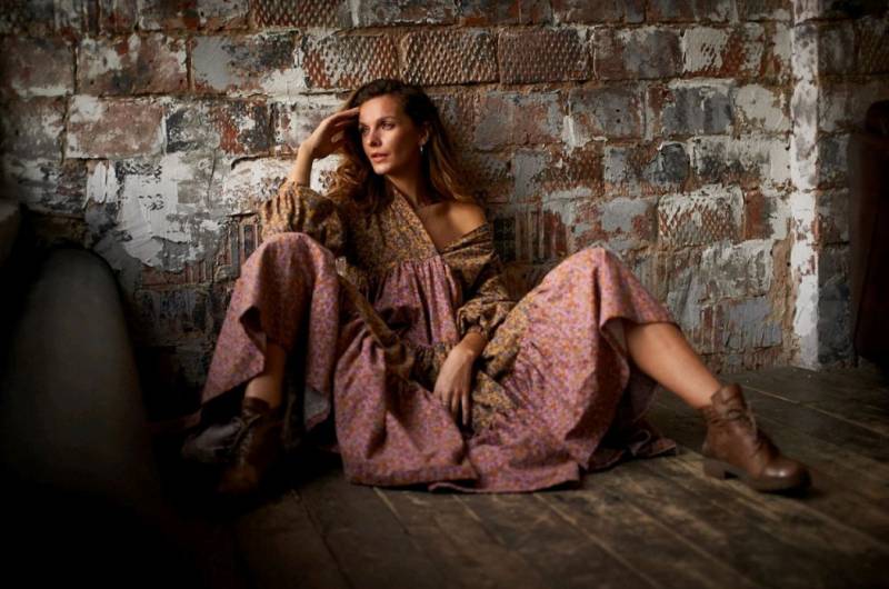 Трендовый стиль бохо на 2024 год: девушка в длинном платье от Zara
