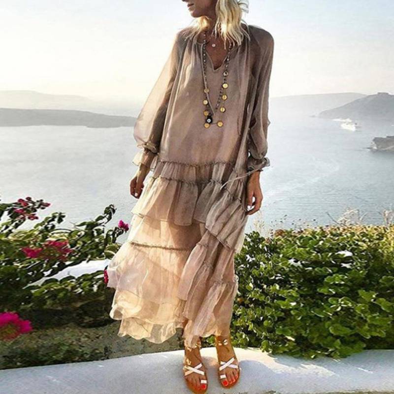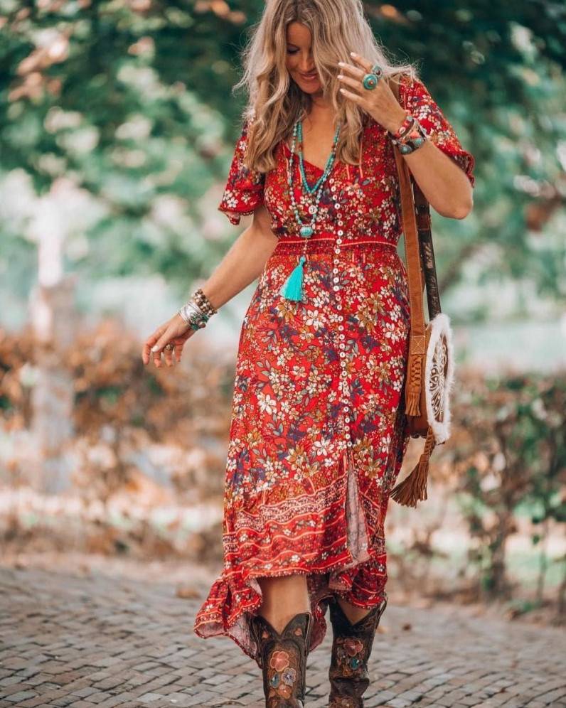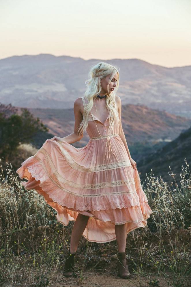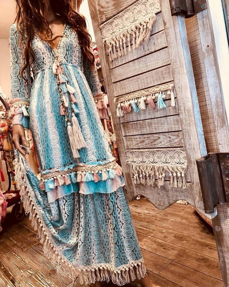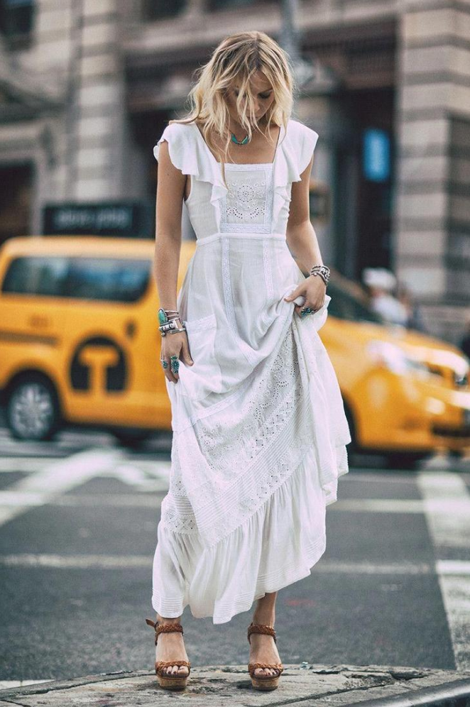 Трендовый стиль бохо на 2024 год: девушка в длинном платье от Zara