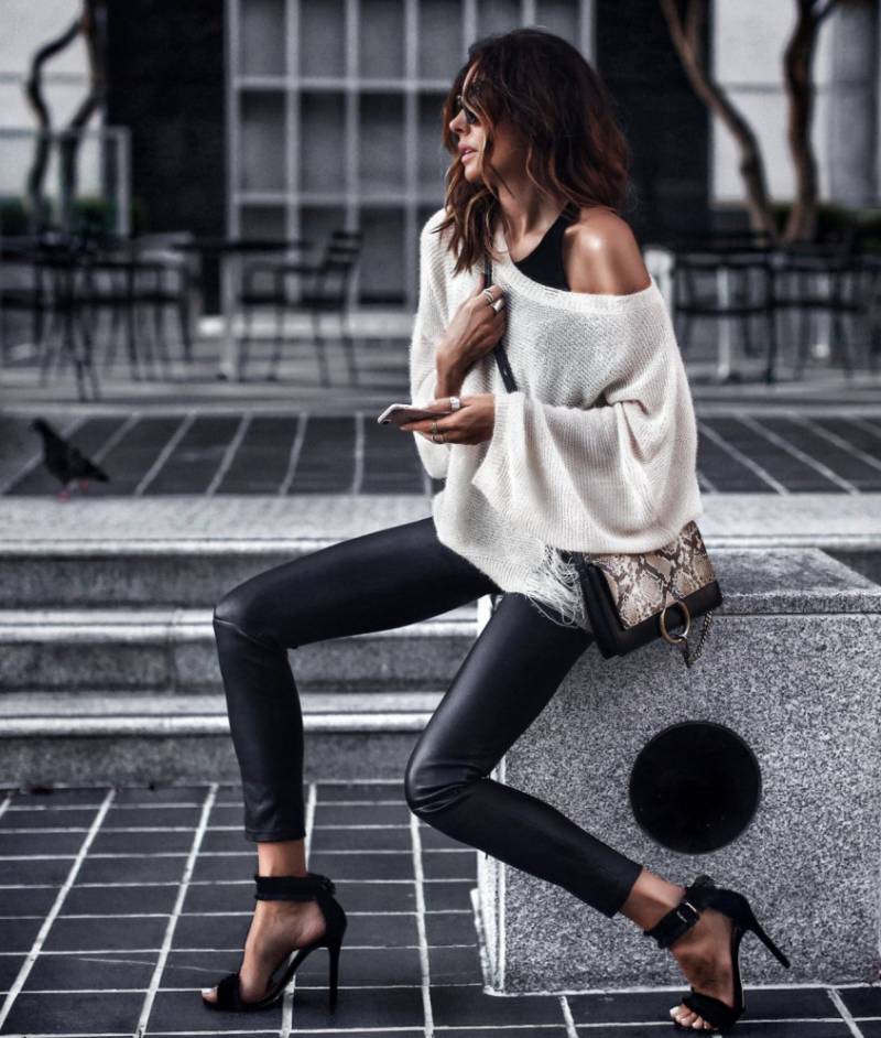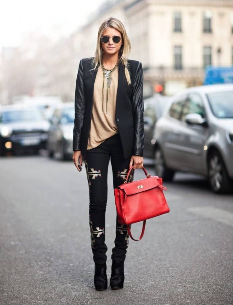 Джинсы с кожаной курткой