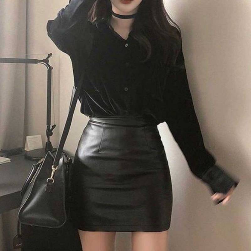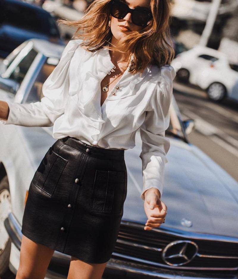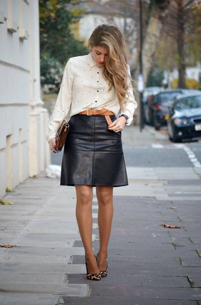 Кожаная юбка с белоснежной рубашкой